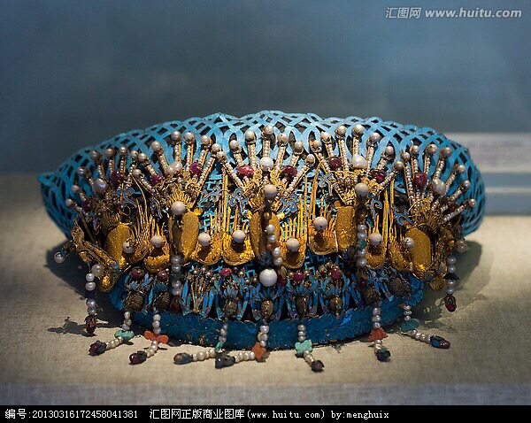 (清代金累丝嵌珠五凤钿)