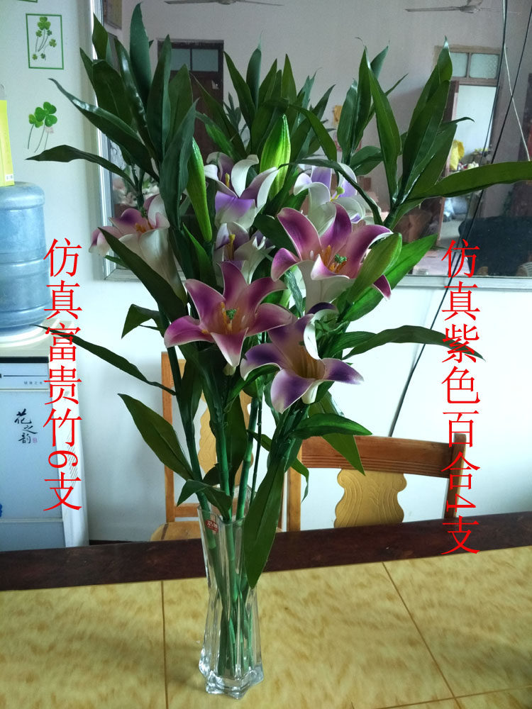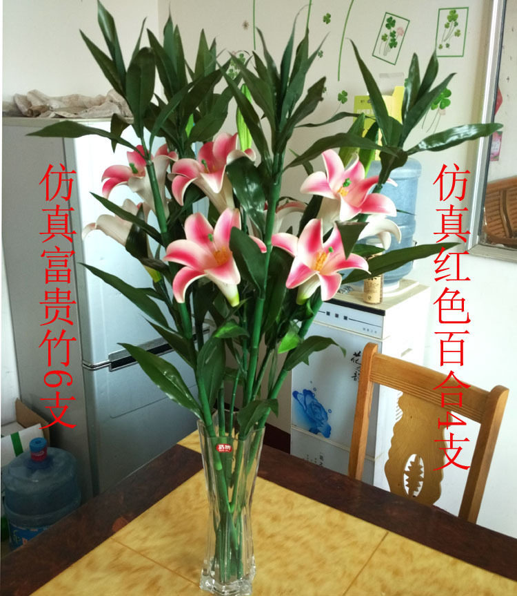淘宝仿真富贵竹开运竹百合套装田园客厅房间假花绢花装饰绿植花艺热卖