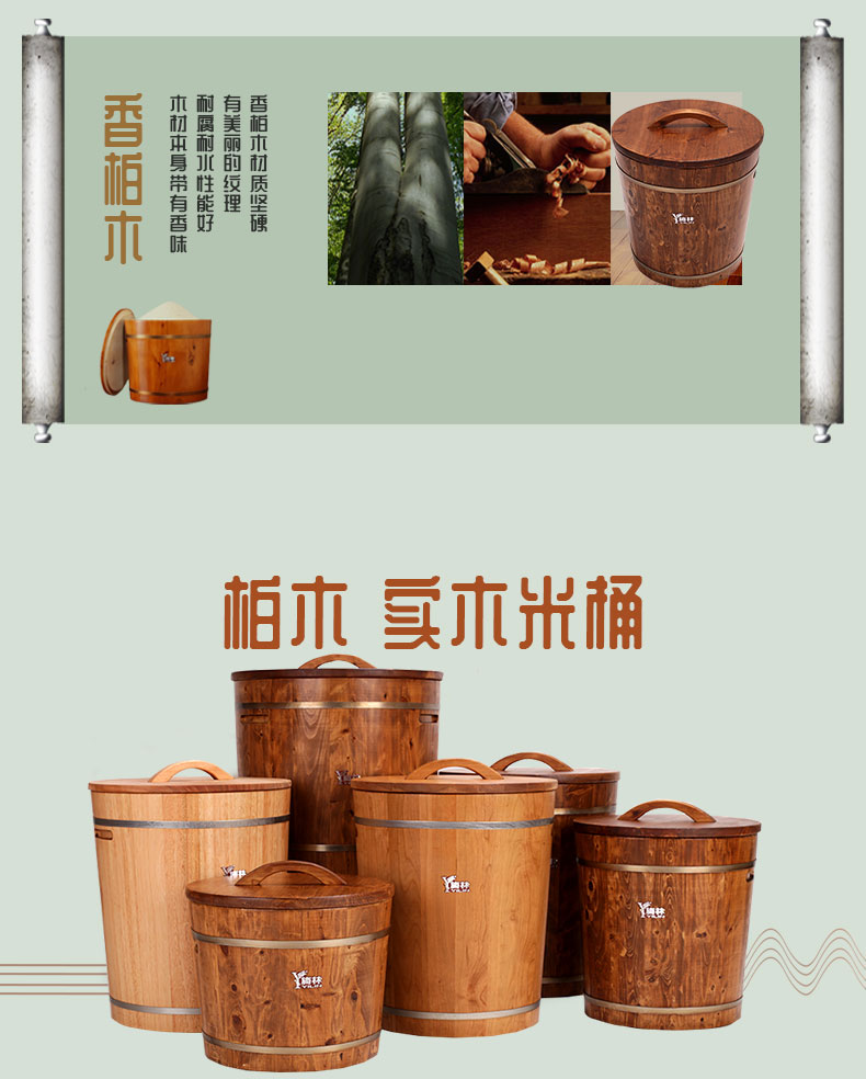 Taobao实木米桶家用20斤装密封储米箱30斤米缸木米桶防潮50斤面粉桶厨房