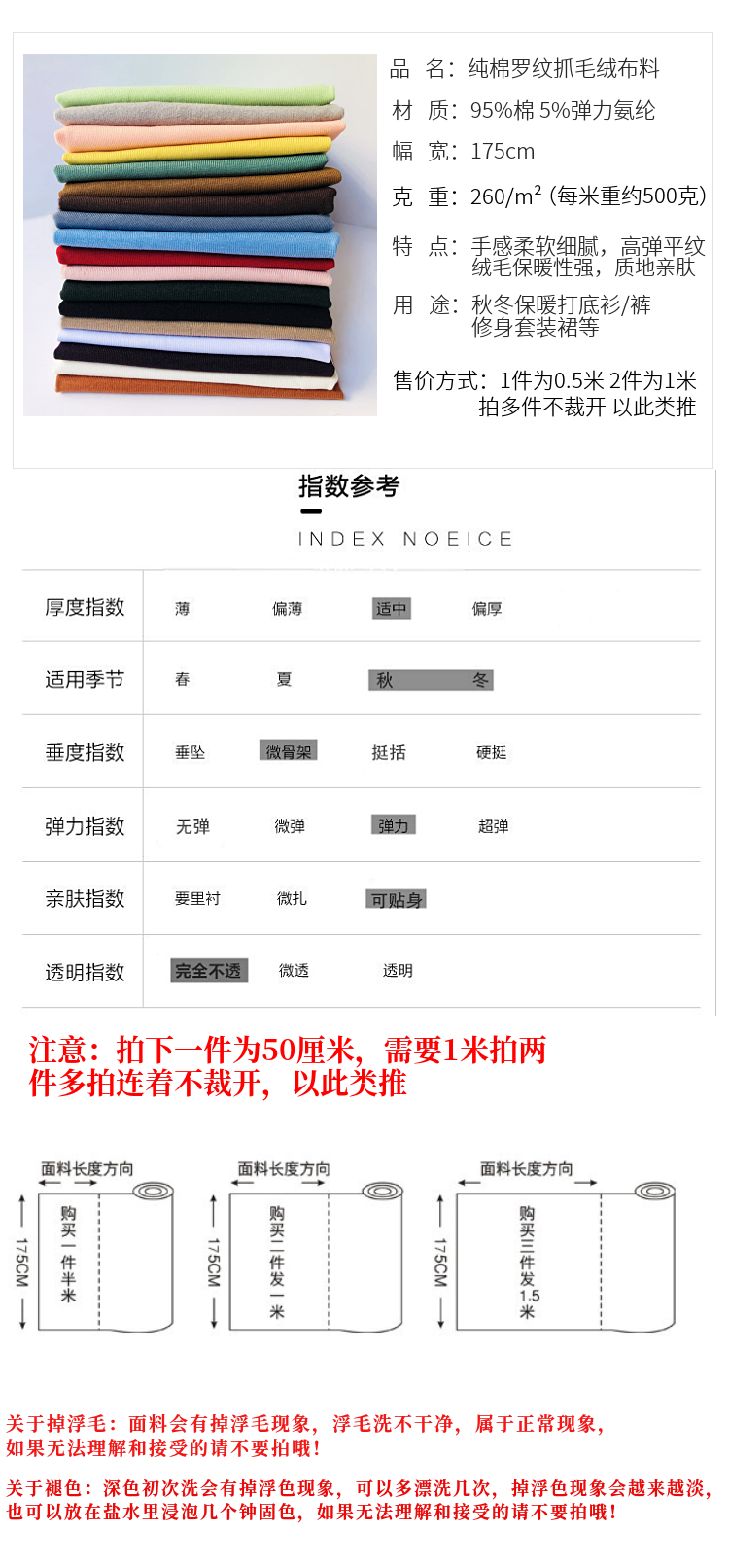 淘宝纯棉抓绒绒布保暖弹力内衣卫衣外衣衣服纯色布料加厚宝宝绒面料
