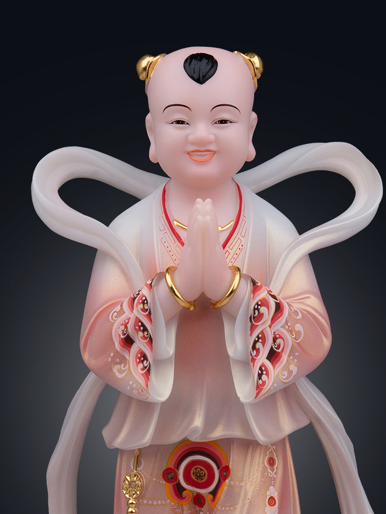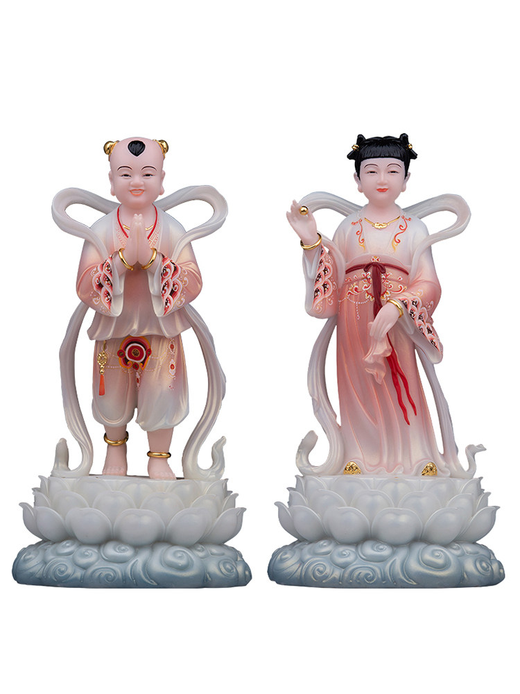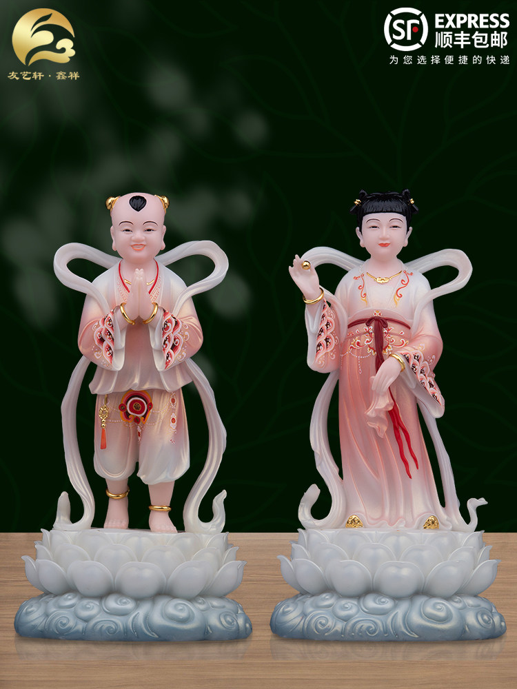淘宝汉白玉善财童子龙女金童玉女佛像供奉摆件观音菩萨像对童佛前侍奉