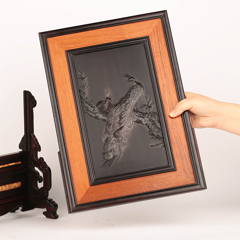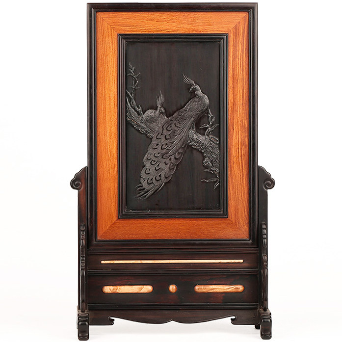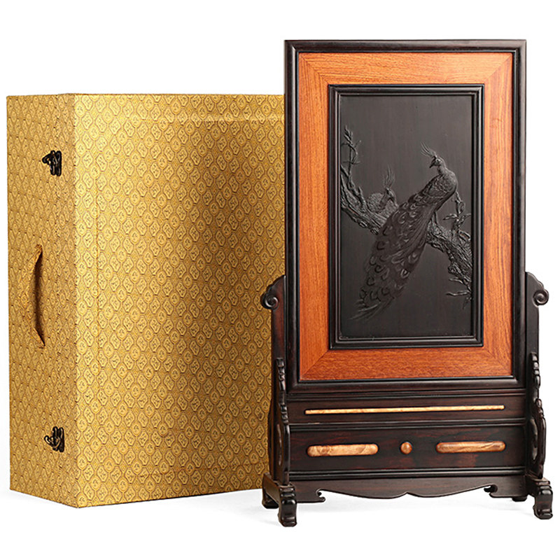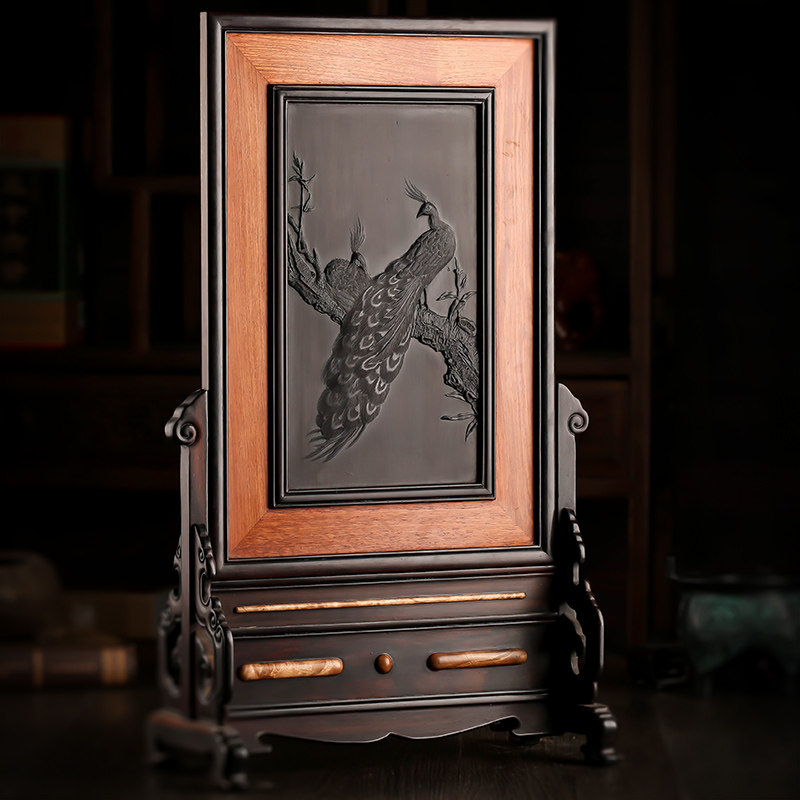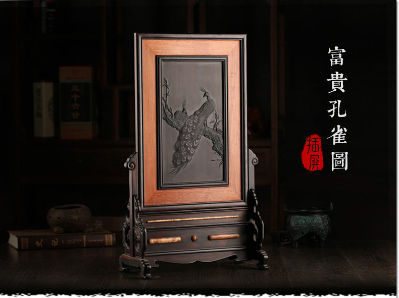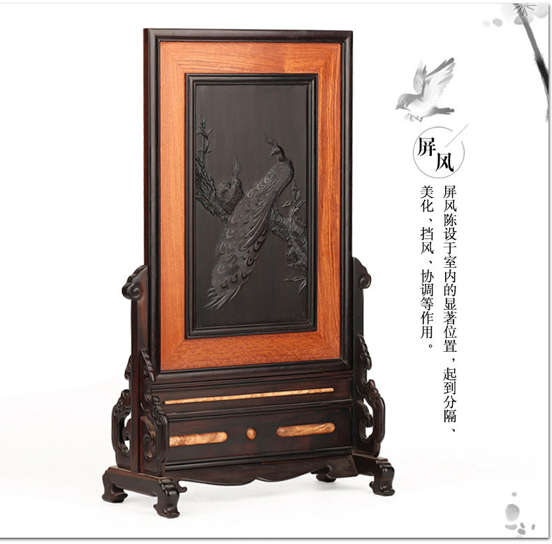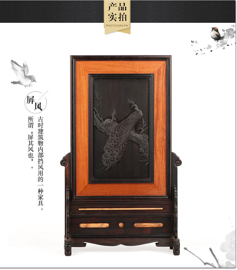 淘宝家和富贵孔雀屏风手工艺品 红木雕刻客厅隔断小插屏台屏装饰摆件