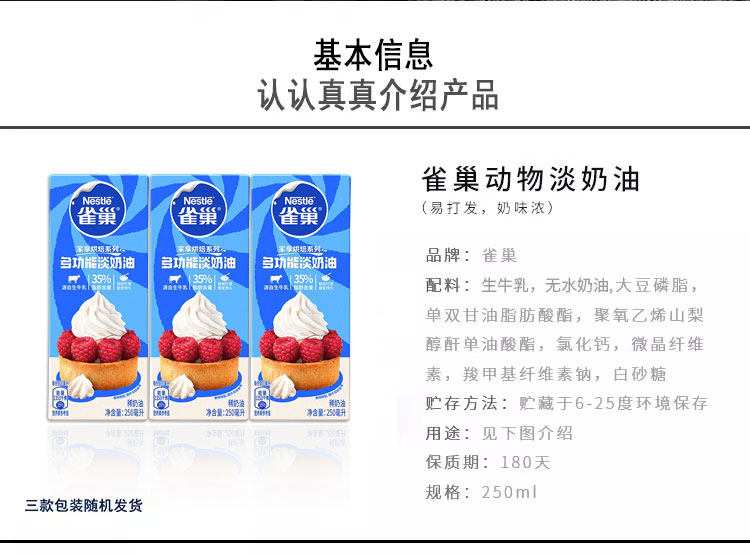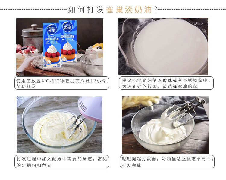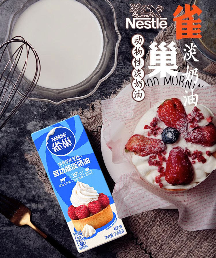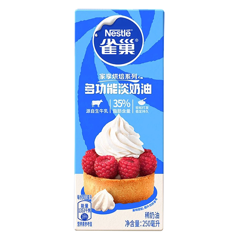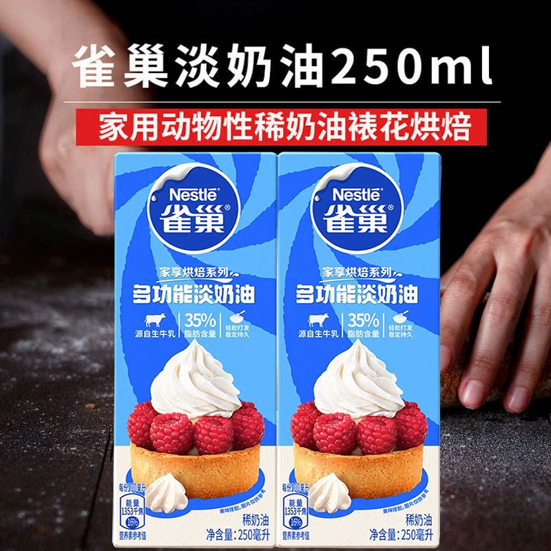 淘宝雀巢淡奶油动物性鲜奶油250ml全脂蛋糕装饰裱花美味奶油常温保存