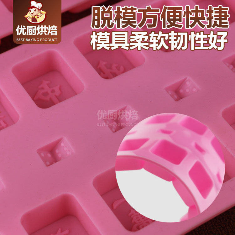 淘宝硅胶巧克力麻将模具 易脱模 十三幺条筒万 麻将蛋糕模具烘焙模具