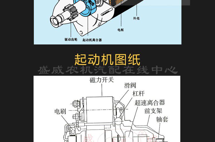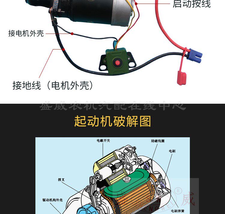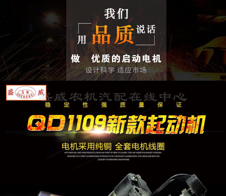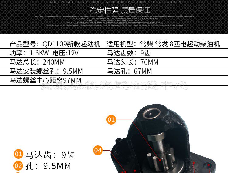 淘宝常柴单缸柴油机起动马达 中国常发QD1109 12V 8匹马力电启动配件