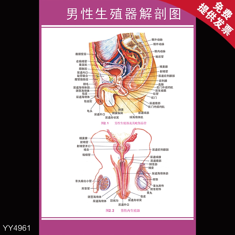 淘宝男性健康知识海报 男性生殖器官解剖示意图 医院男科科室装饰挂图