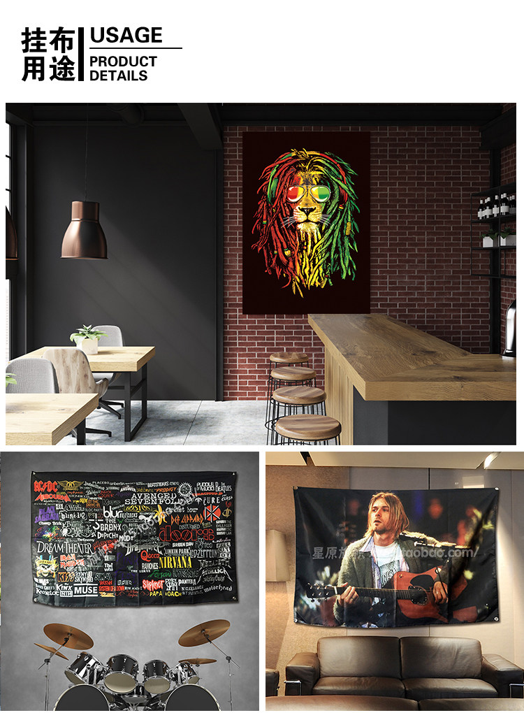 淘宝来图定制 痛仰乐队 酒吧会所纹身工作室墙布墙饰壁挂挂旗挂布