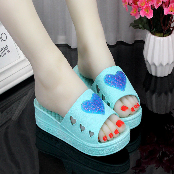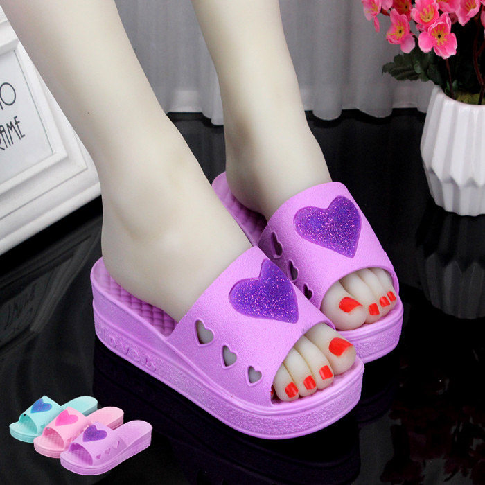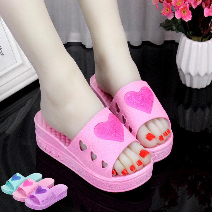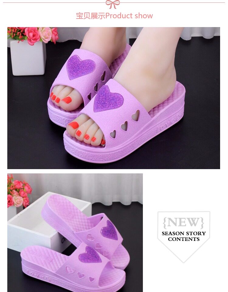 淘宝新款大码41特价厚底高跟家居鞋室内防滑洗澡淋浴室外坡跟拖鞋女