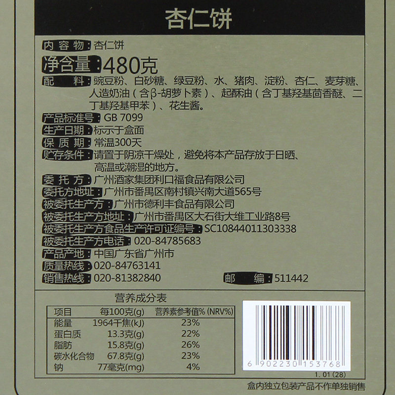 淘宝广州酒家 杏仁饼+鸡仔饼组合铁盒装广东粤式糕点饼酥节日送礼手信