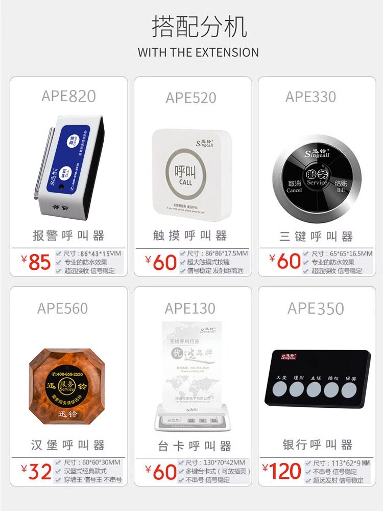 淘宝迅铃无线呼叫器茶楼网吧手环手表振动腕表一键震动银行呼叫器