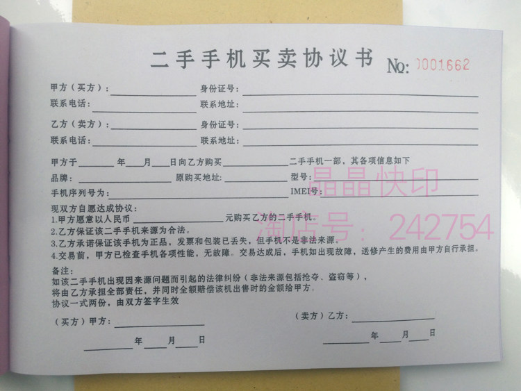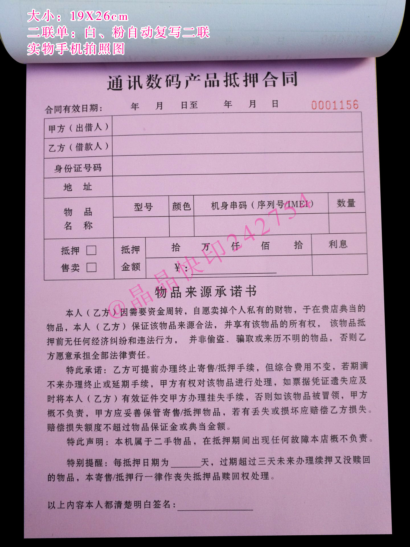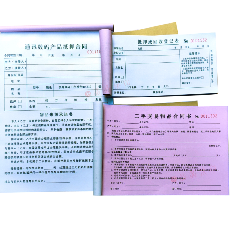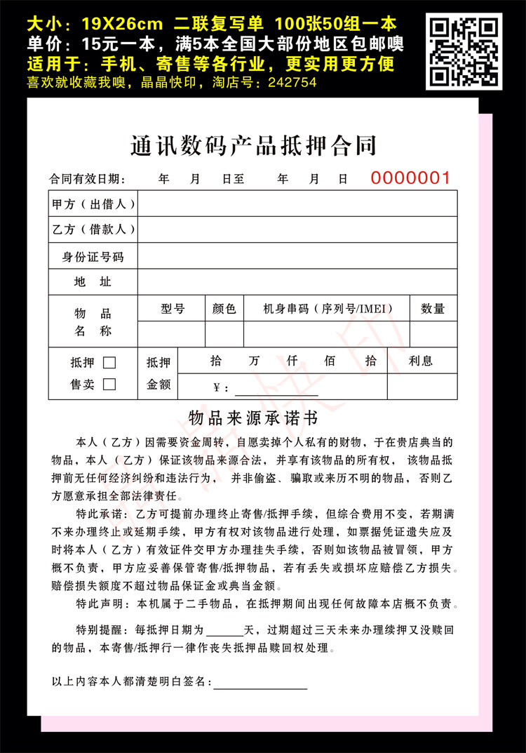淘宝现货手机数码物品抵押售卖寄售典当合同凭证协议手机质押借款收据