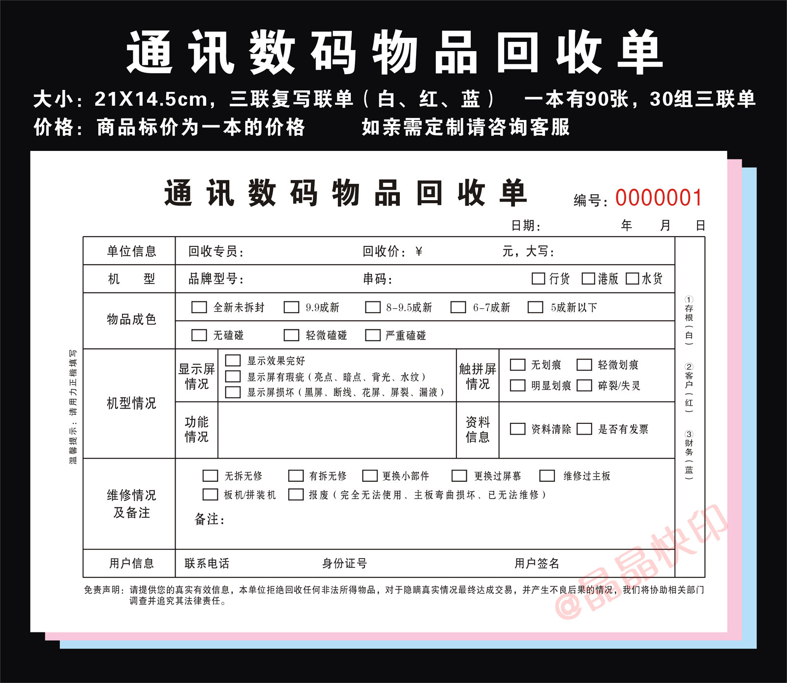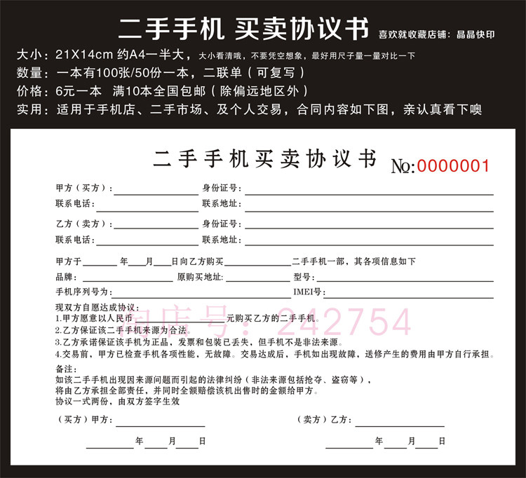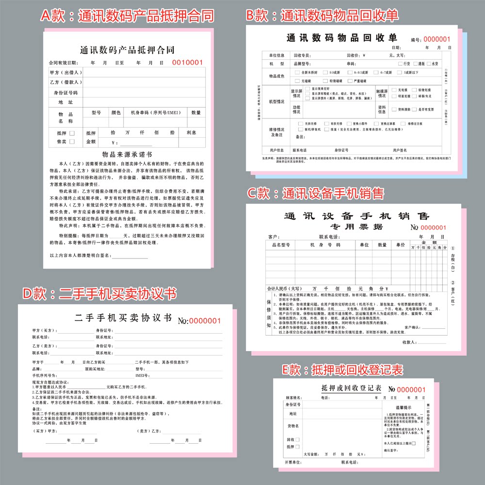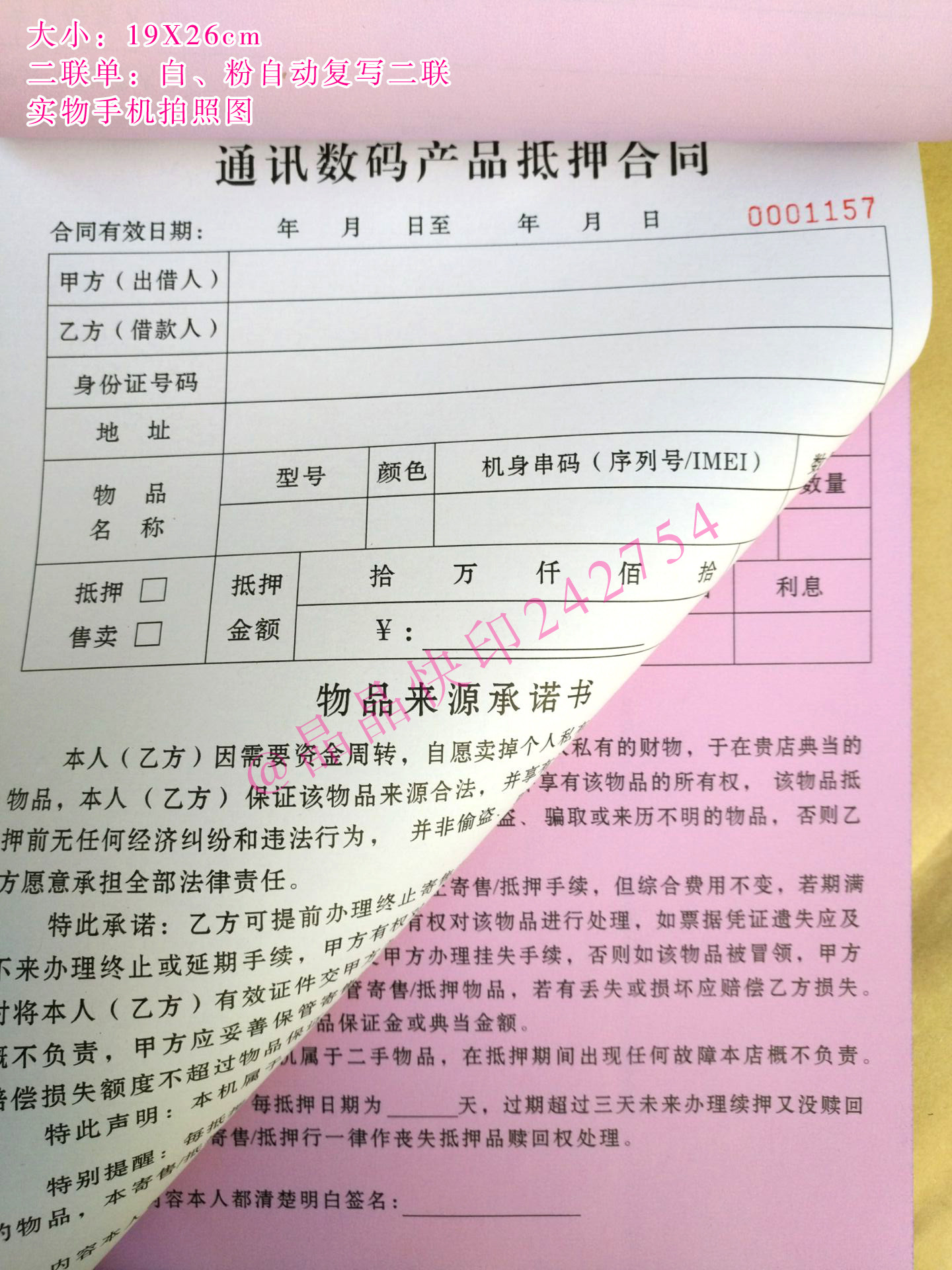 淘宝现货手机数码物品抵押售卖寄售典当合同凭证协议手机质押借款收据