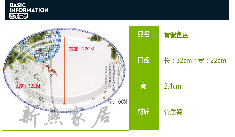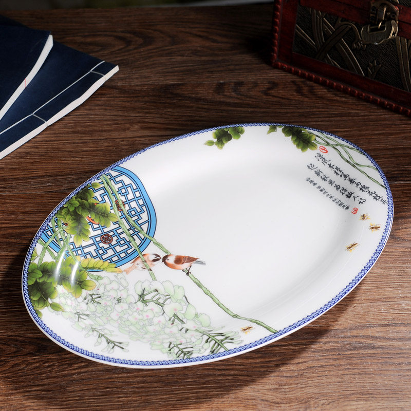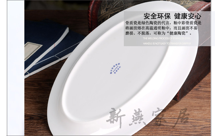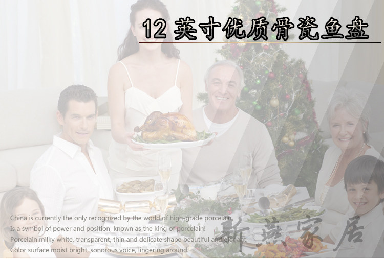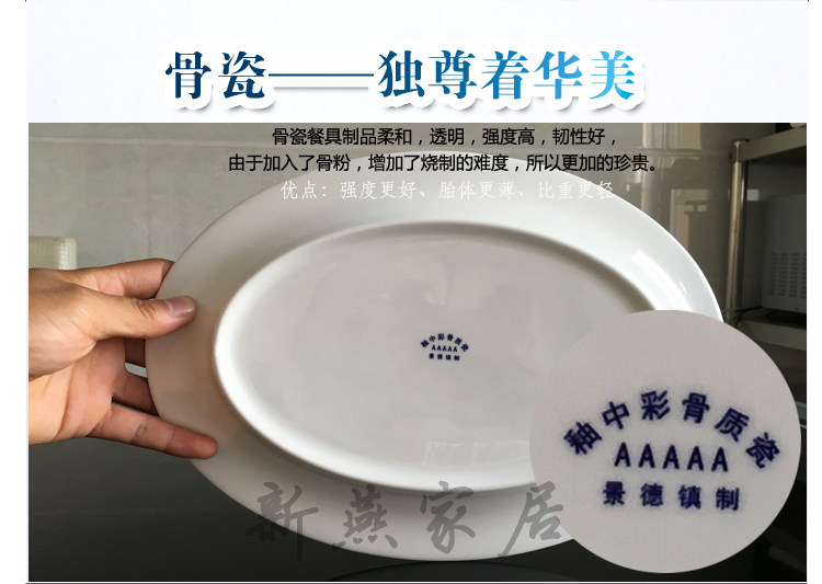 淘宝景德镇陶瓷器椭圆形鱼盘12英寸健康家用骨瓷鱼盘餐具微波炉可用