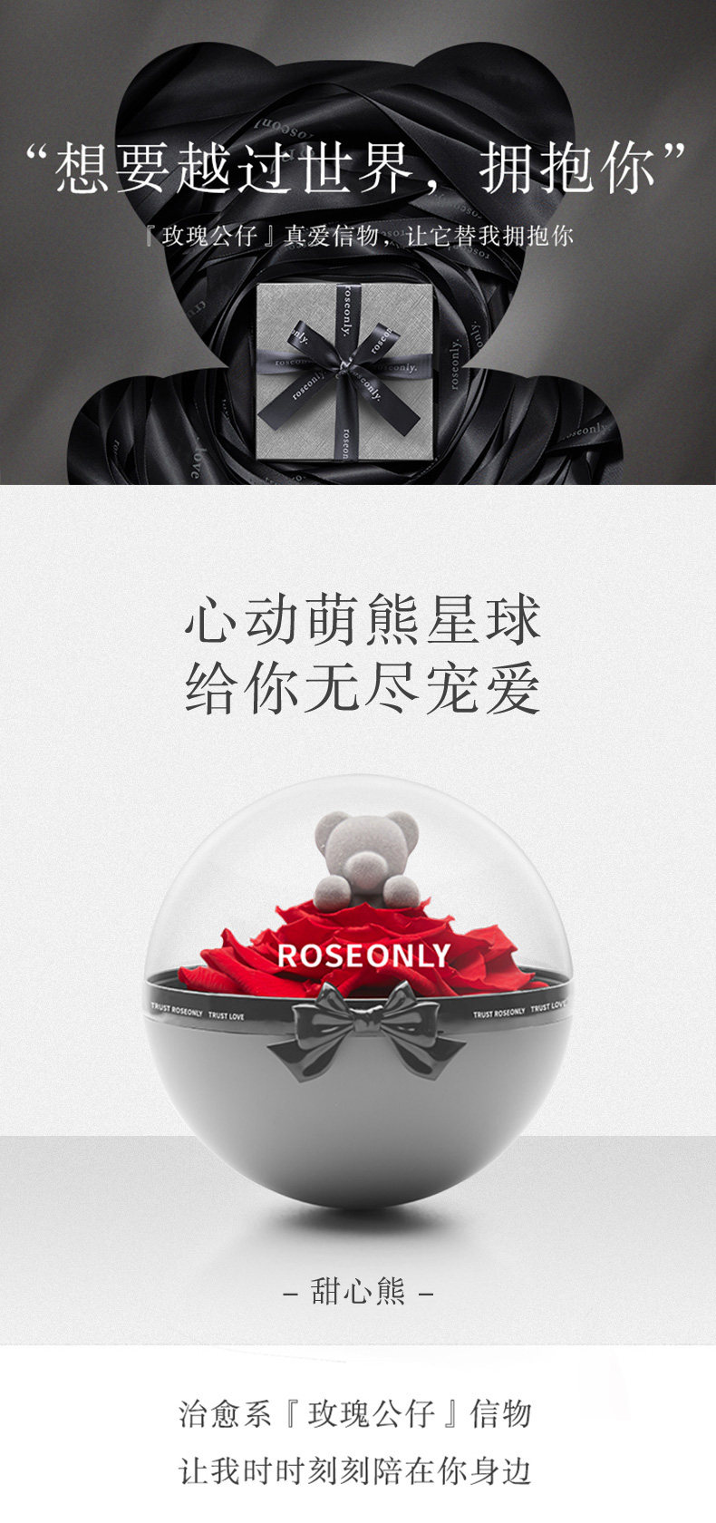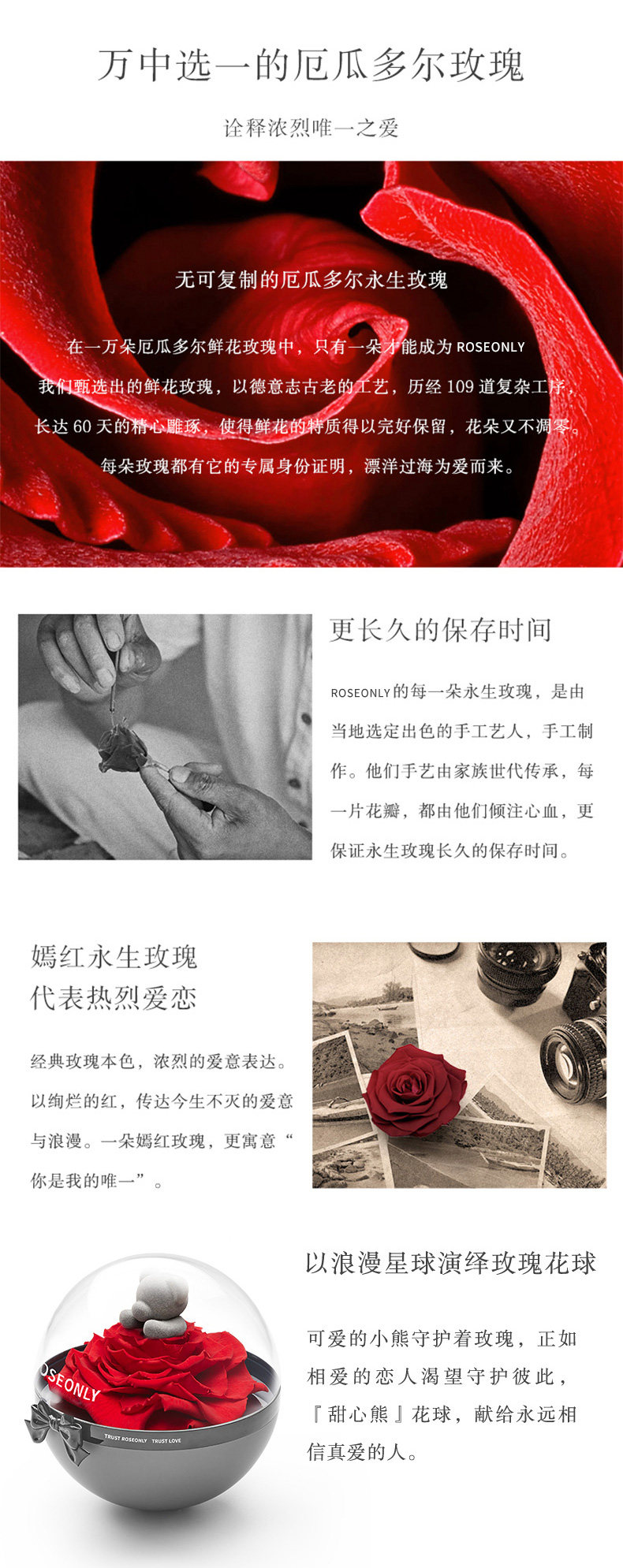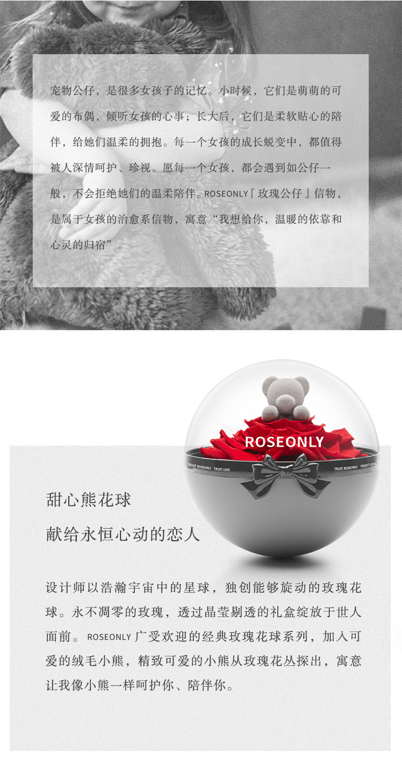 member.sources.ROSEONLY玫瑰公仔 永生花礼盒甜心熊花球送女友爱人情人节礼物