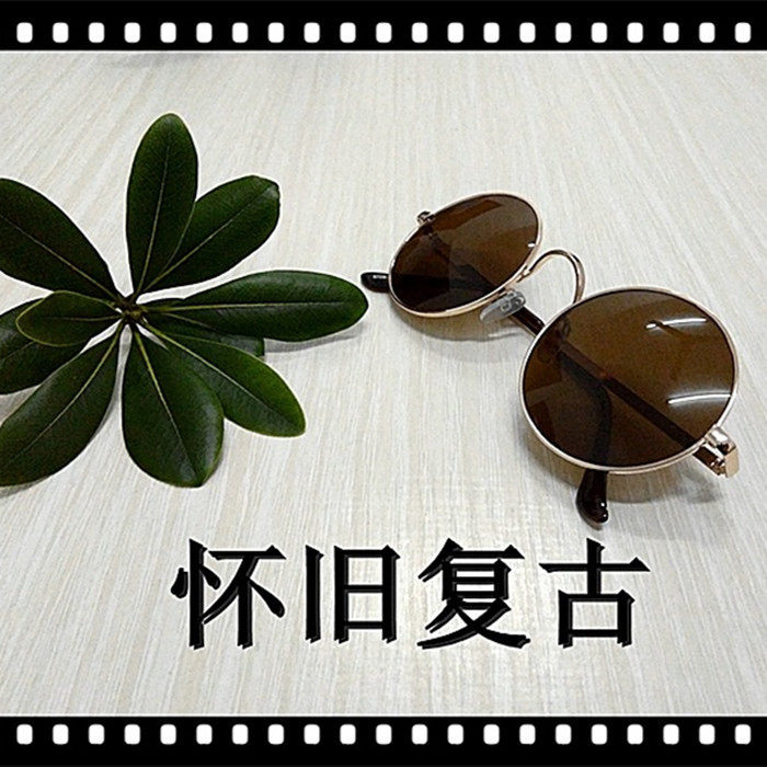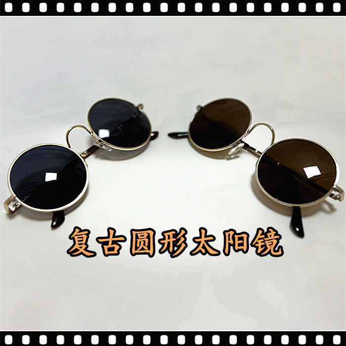 淘宝圆形复古太阳眼镜金属框个性演出装扮道具港风民国先生明清朝墨镜
