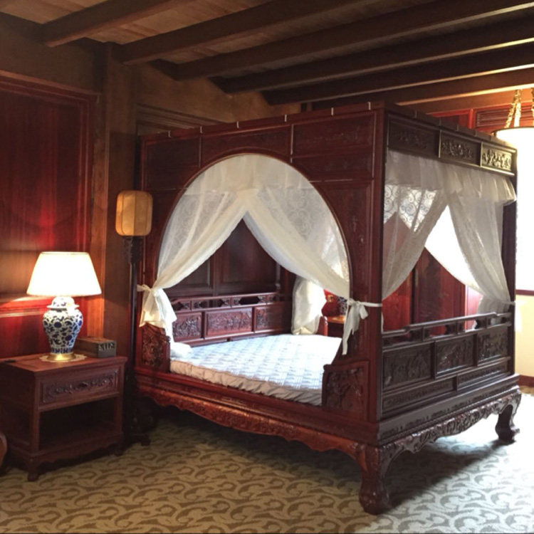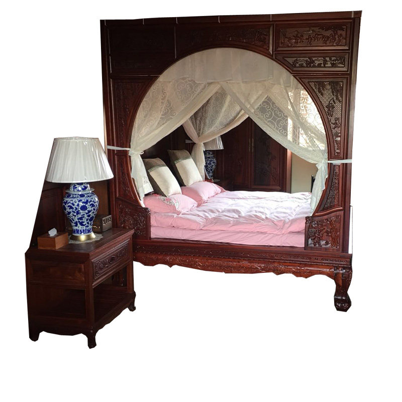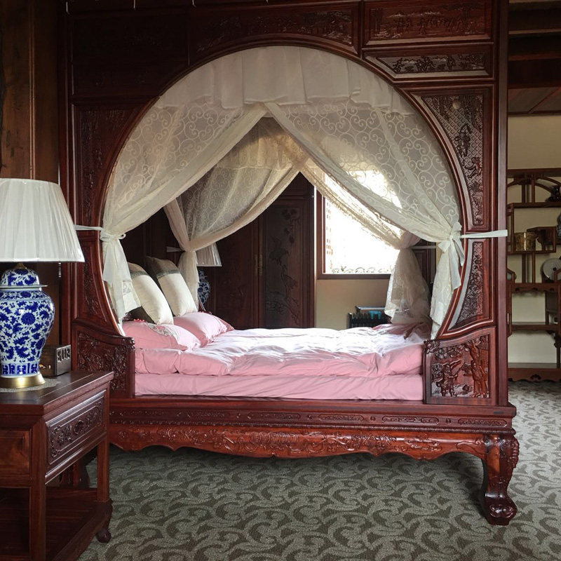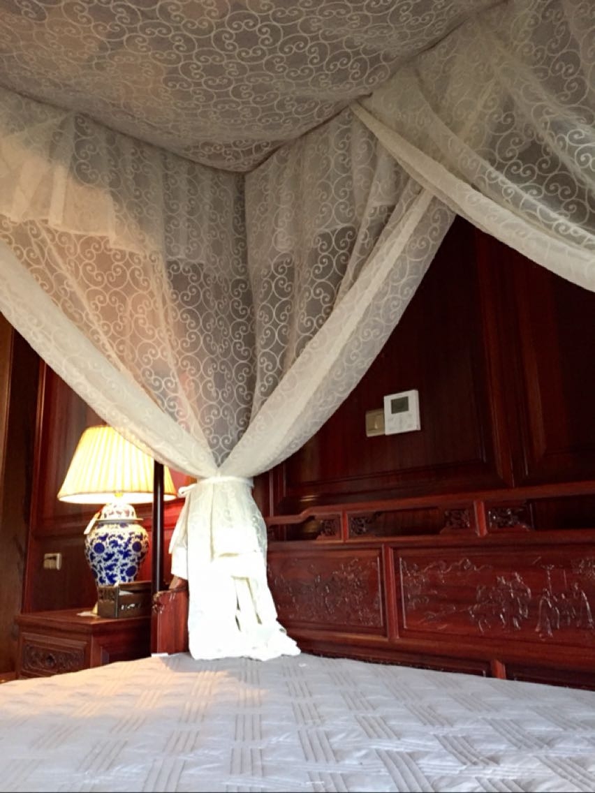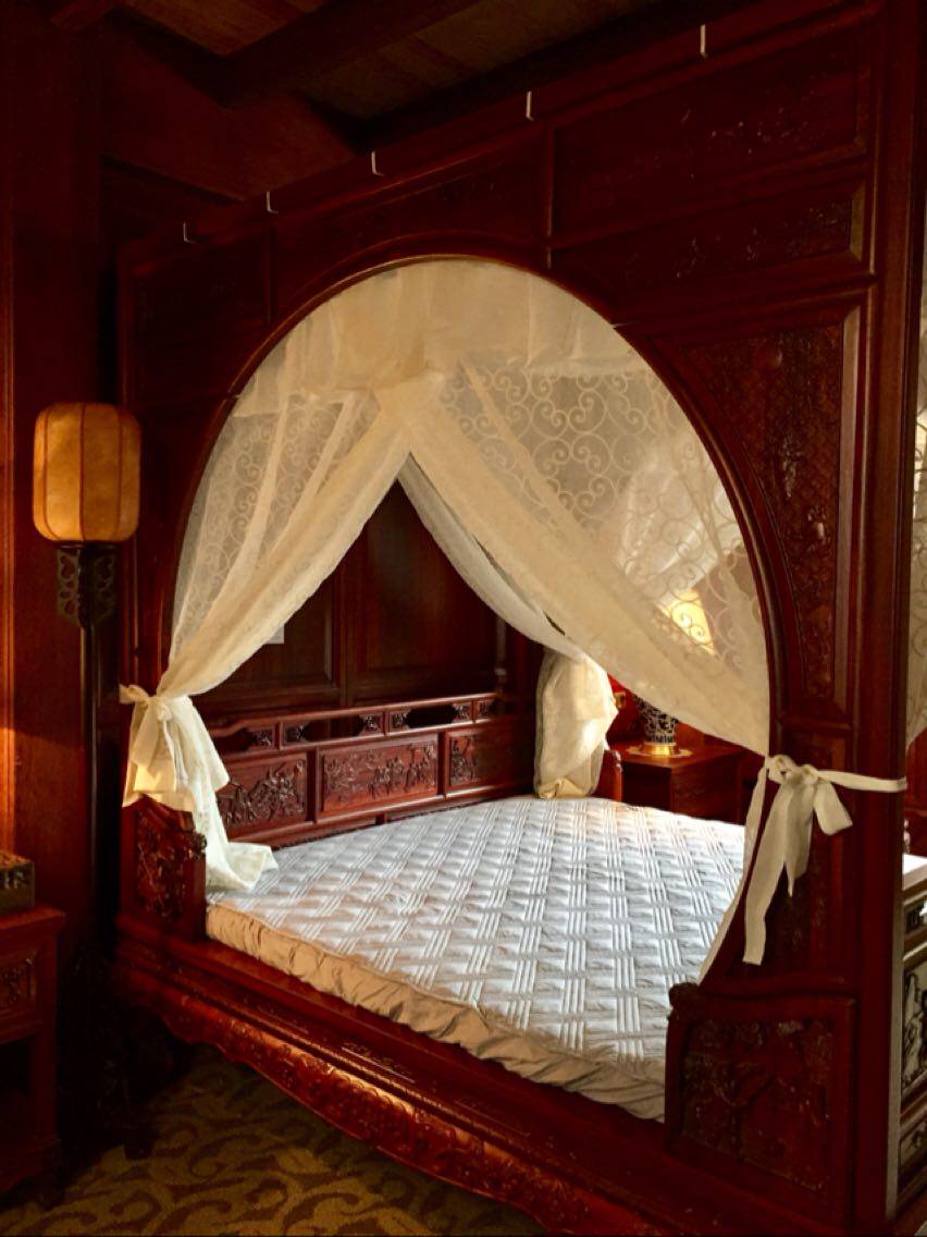 淘宝中式仿明清古典风格双月洞架子床白色棉麻绣花整体蚊帐唯美床幔纱