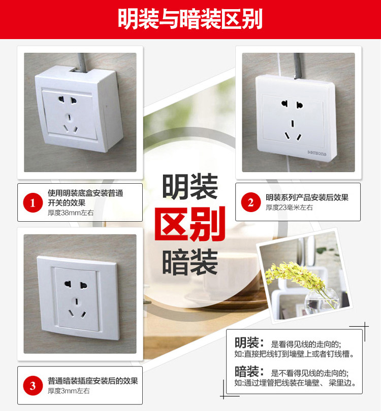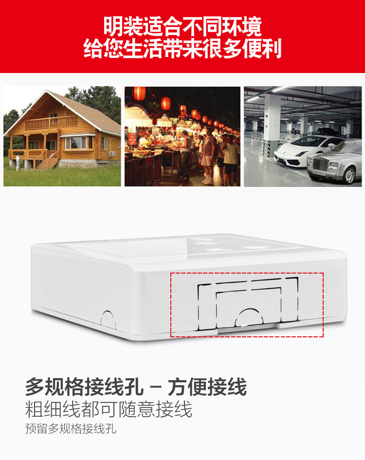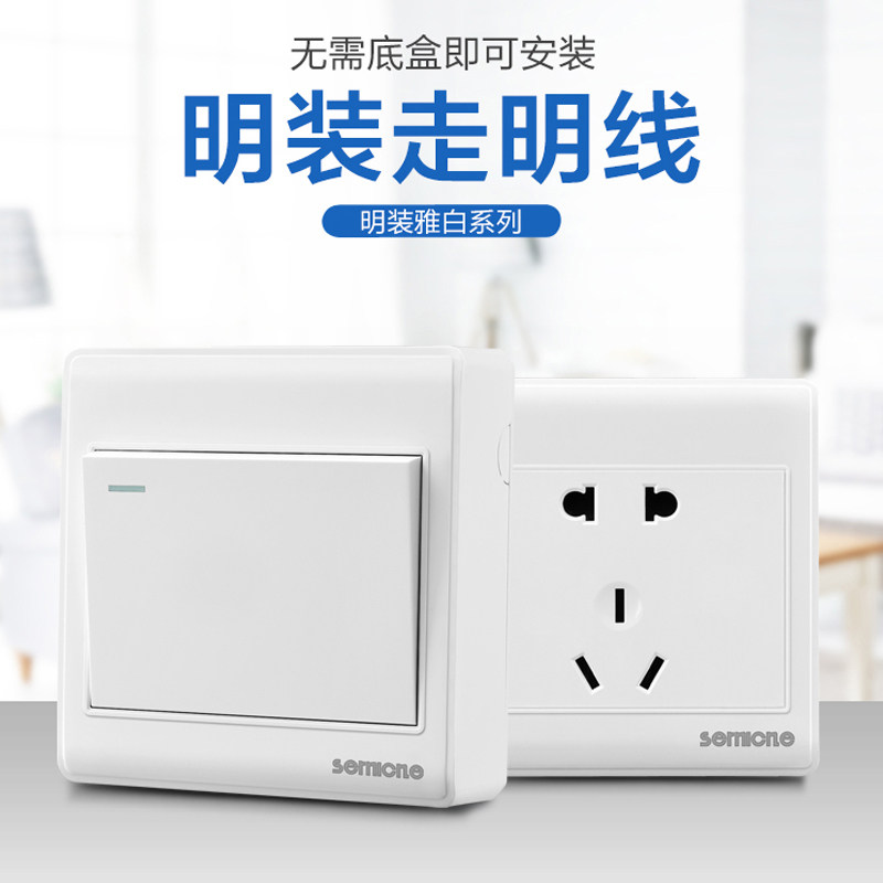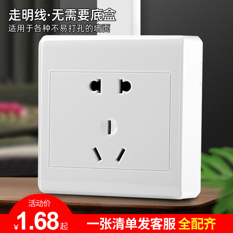 淘宝国际电工明装开关插座面板明线一开5孔家用多孔五孔十孔明插座