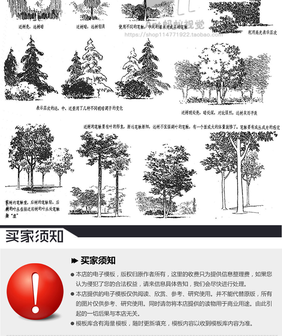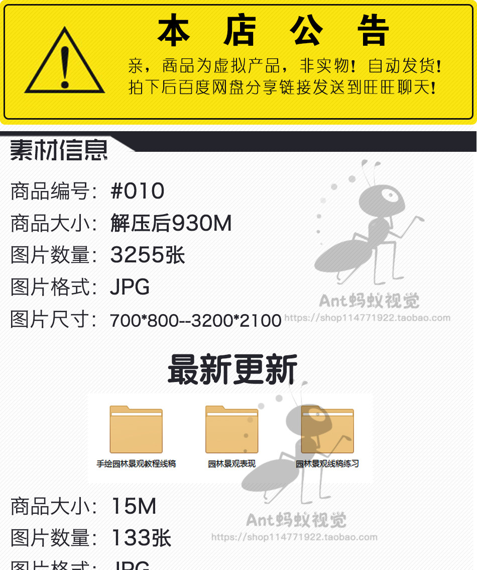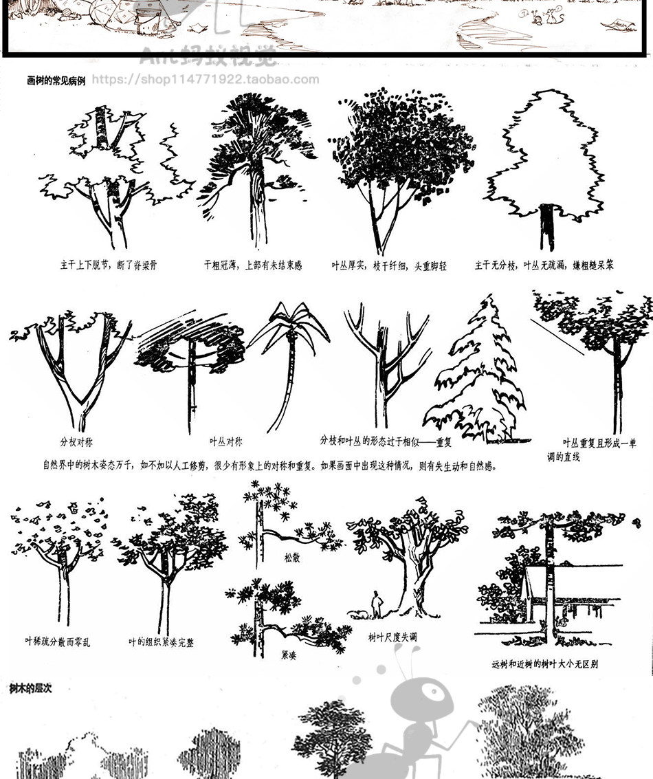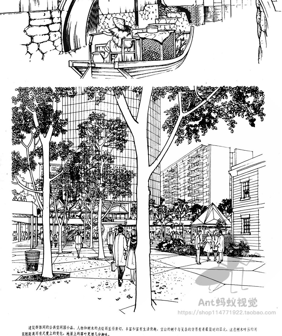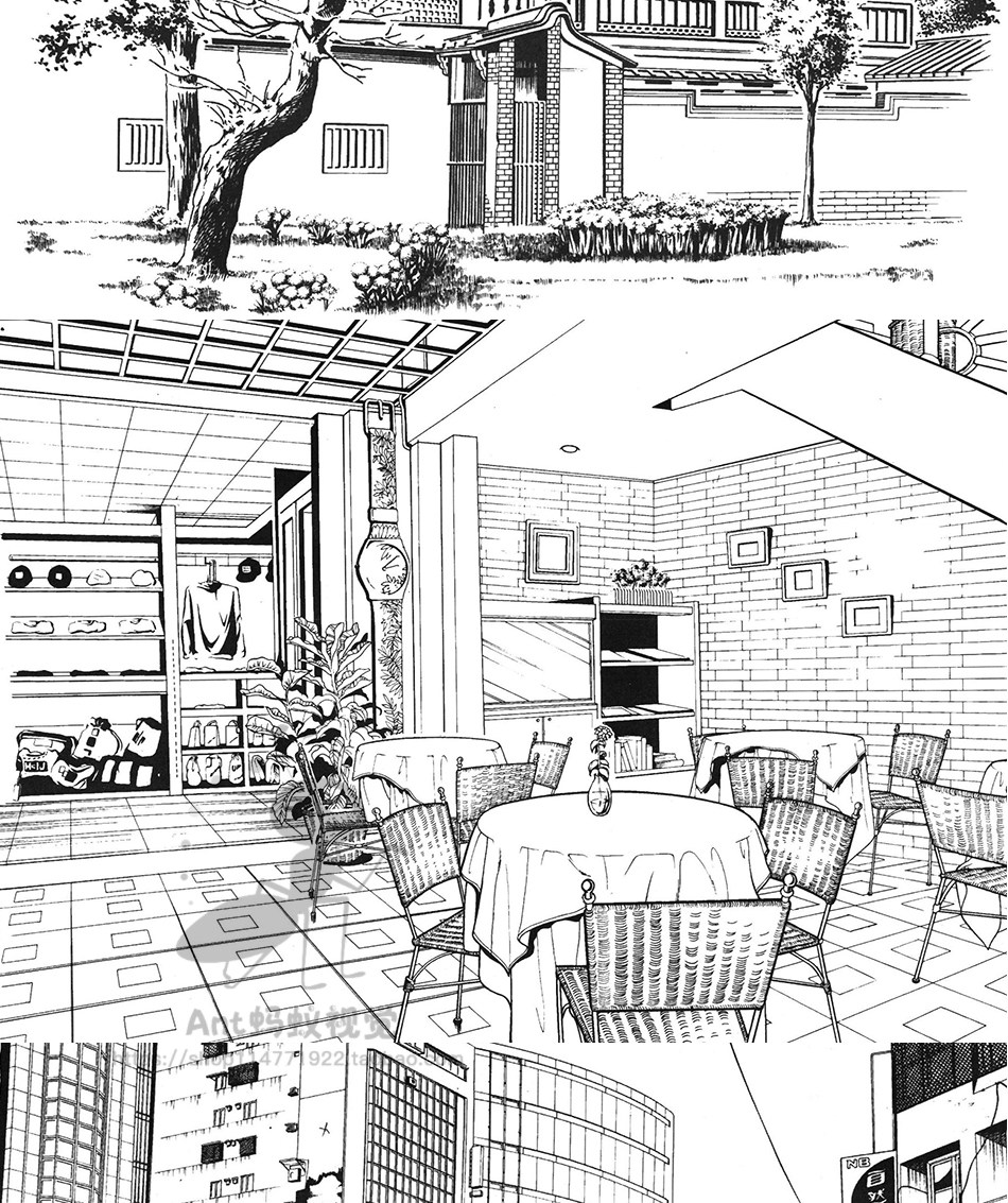 淘宝自然风光园林植物现代古代建筑手绘黑白线稿素材漫画背景速写画技
