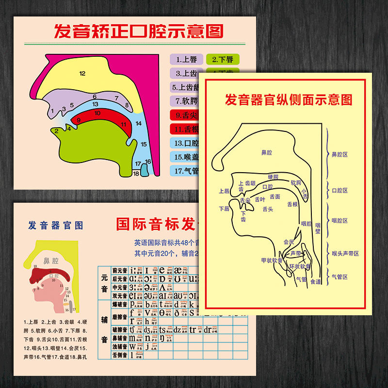 淘宝发音矫正口腔示意图挂图宣传画英语拼音发音器官图解墙贴纸WSA83