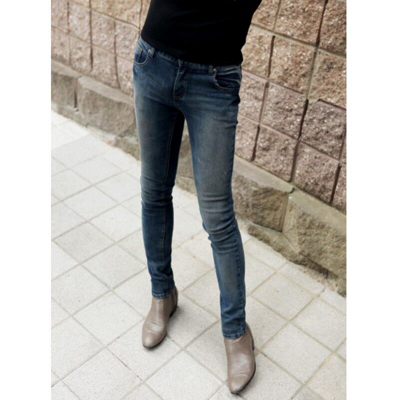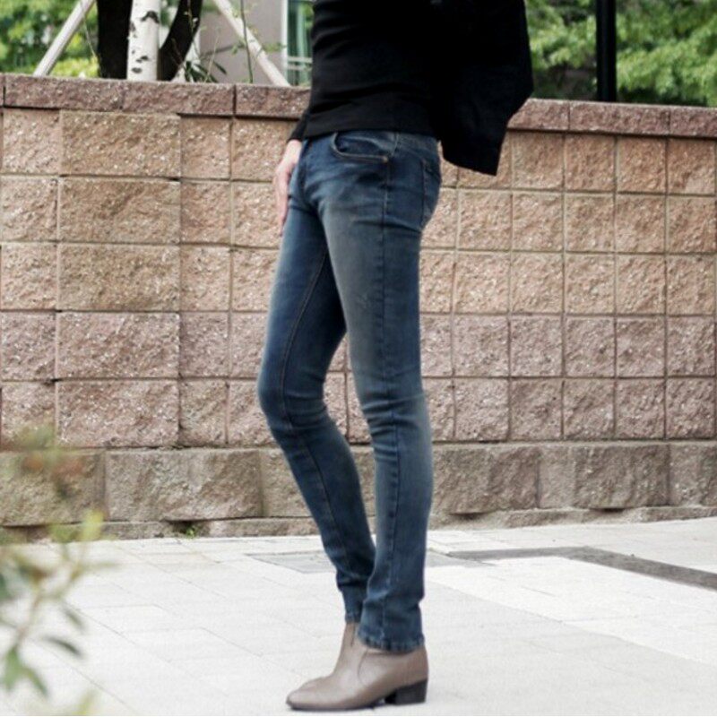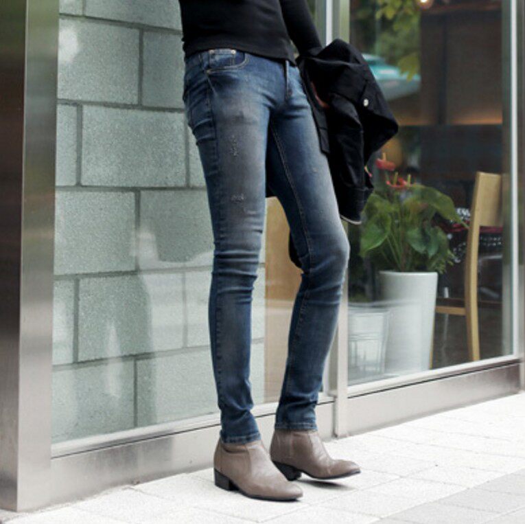 淘宝韩国个性做旧紧身牛仔裤小脚男明星同款复古秋款铅笔裤紧身长裤男