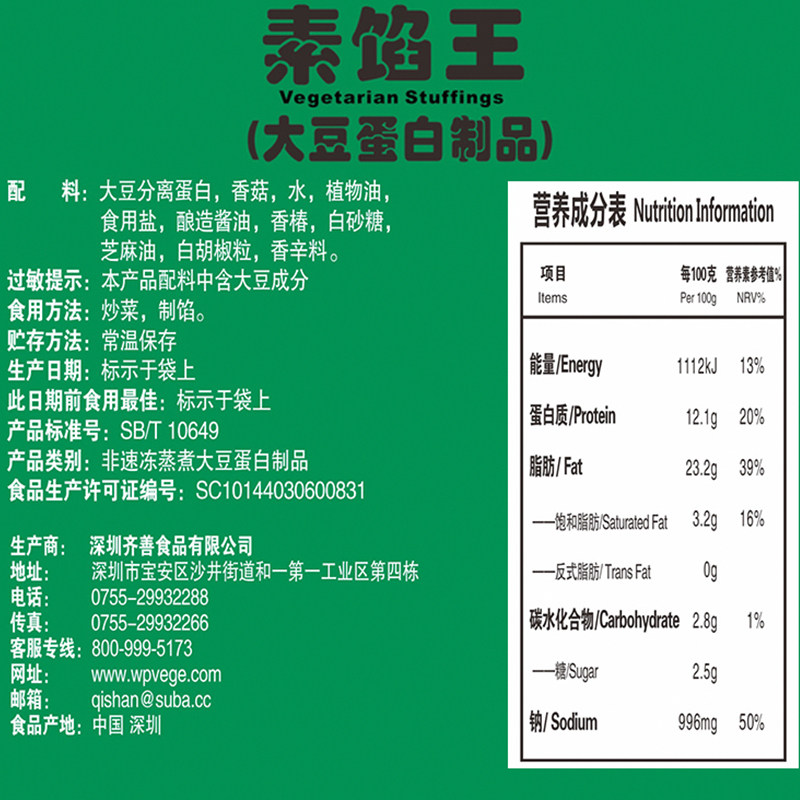 淘宝齐善素食 素馅王480g 包子饺子馅料人造肉豆制品仿荤素肉馅调味料