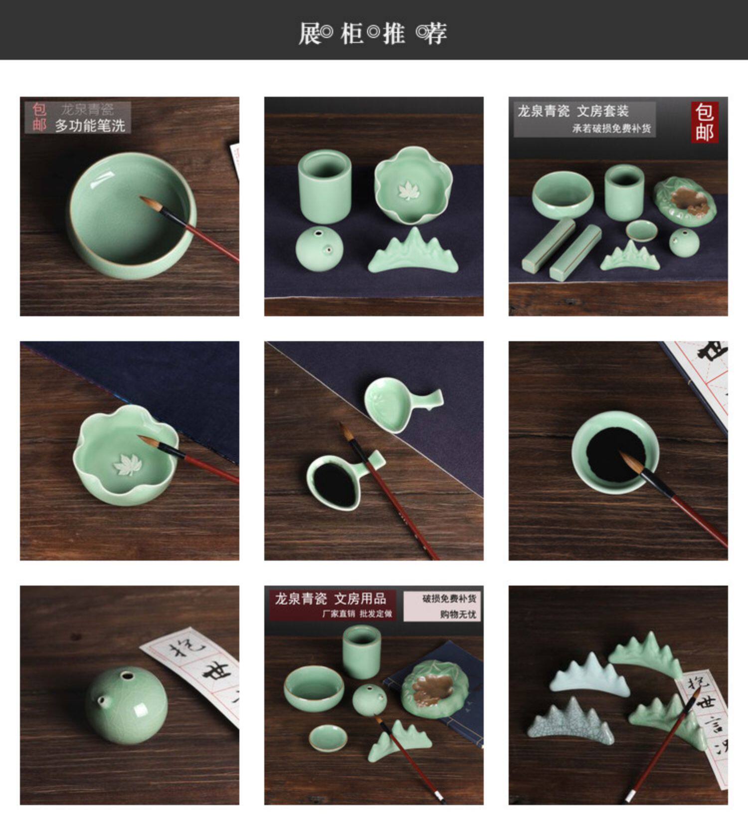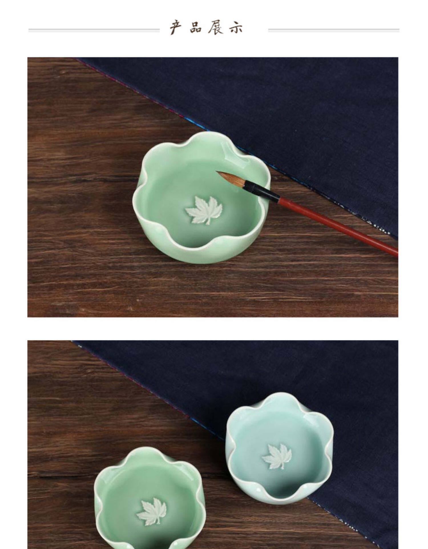 淘宝龙泉青瓷笔洗枫叶洗陶瓷文房四宝笔洗哥窑洗笔缸书法绘画练字洗笔