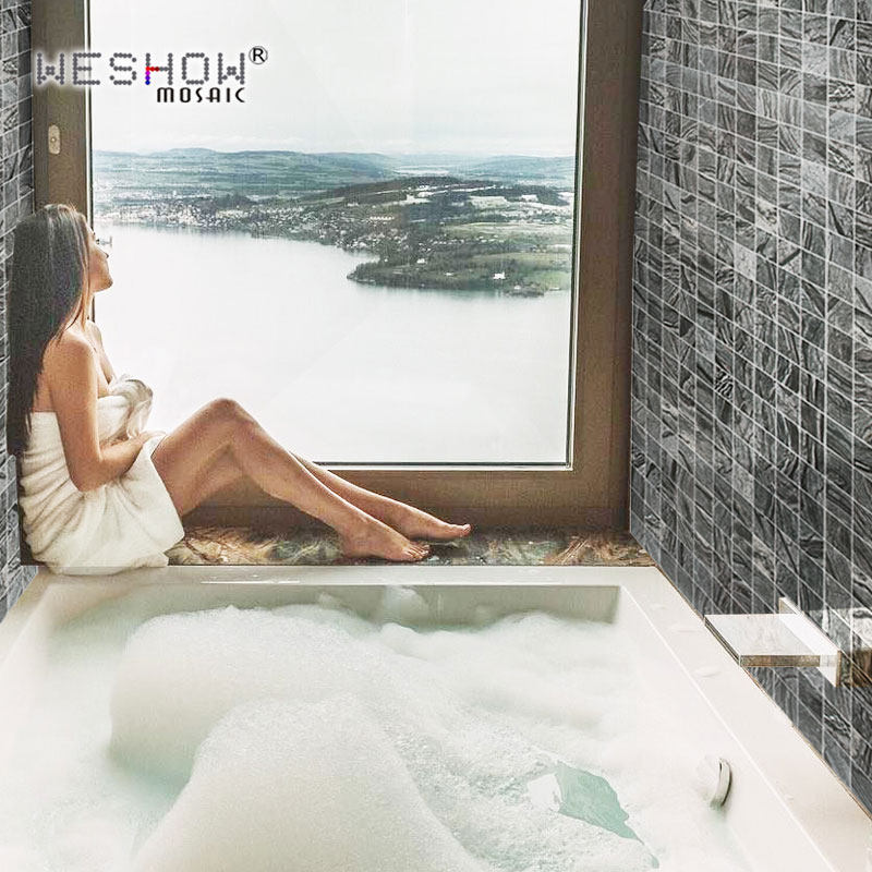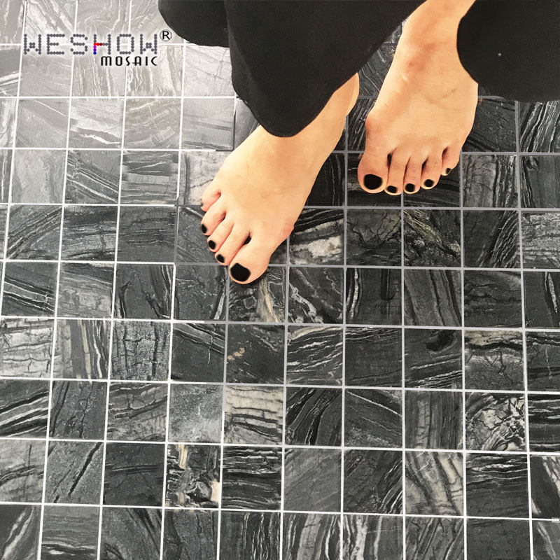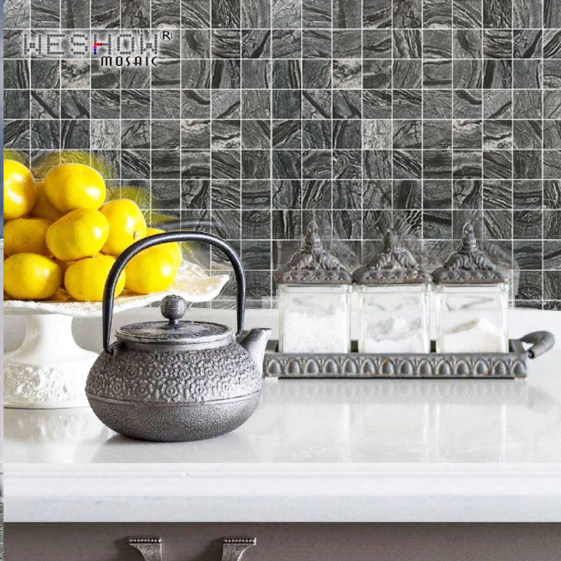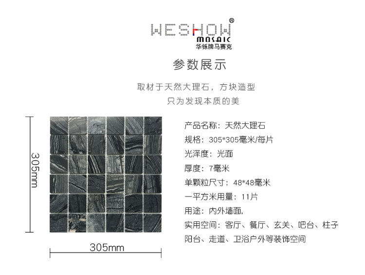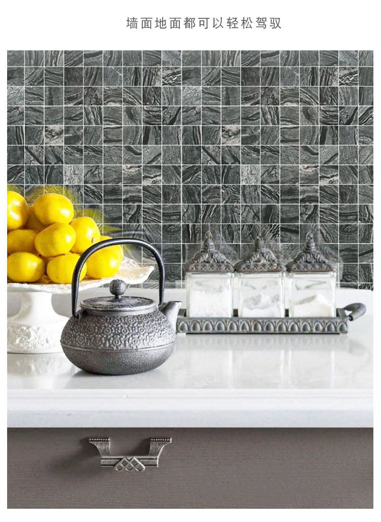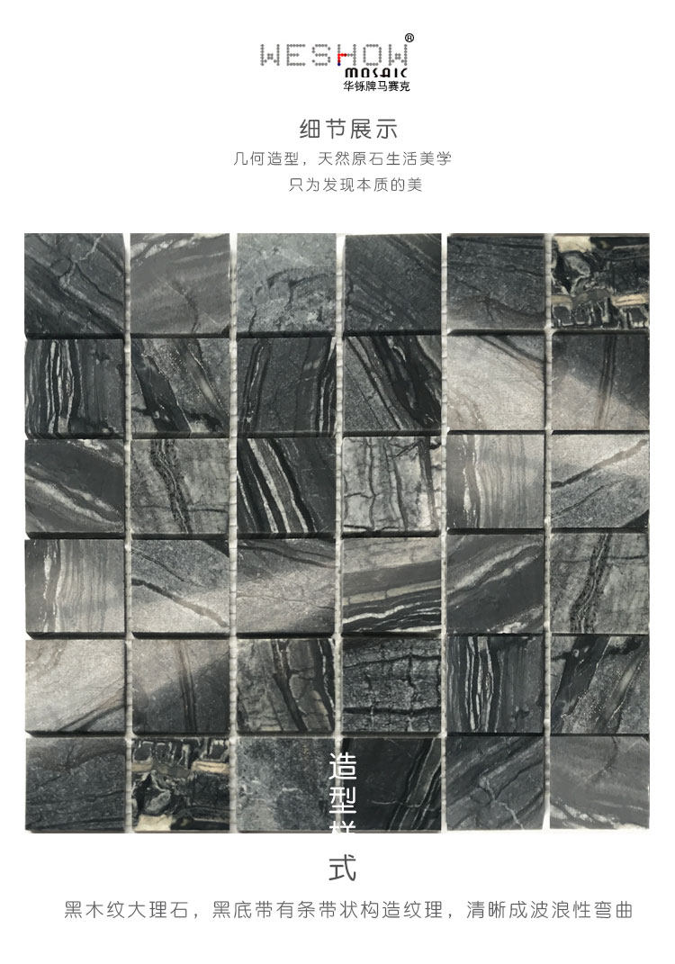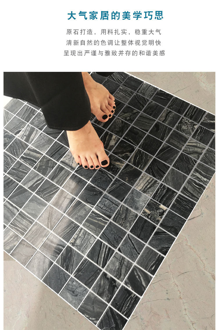淘宝卫生间黑色马赛克天然大理石石材古木纹厨房吧台玄关背景墙瓷砖