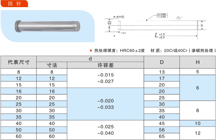 淘宝回针 塑模高档回针/标准模架回程杆复位杆反顶杆杆径Φ20*80-450