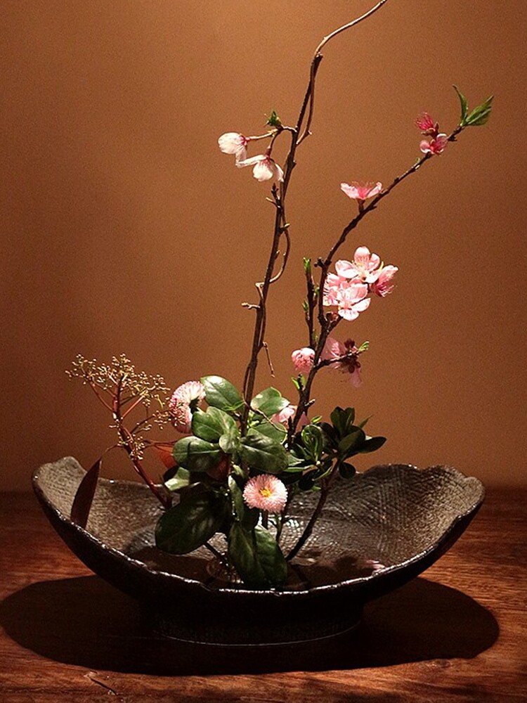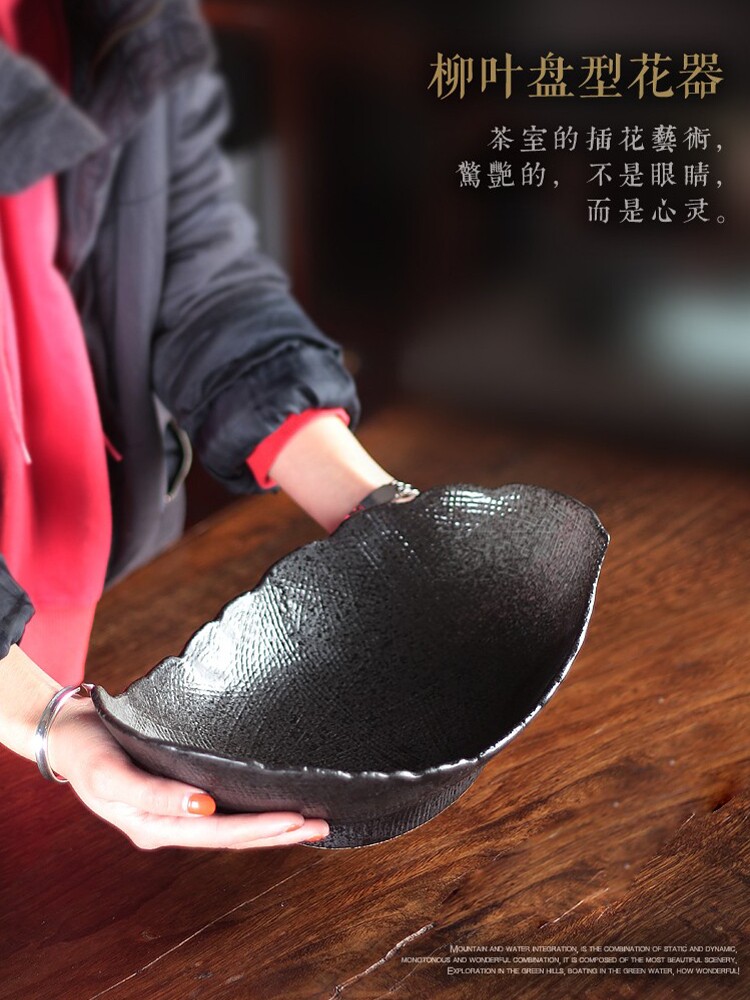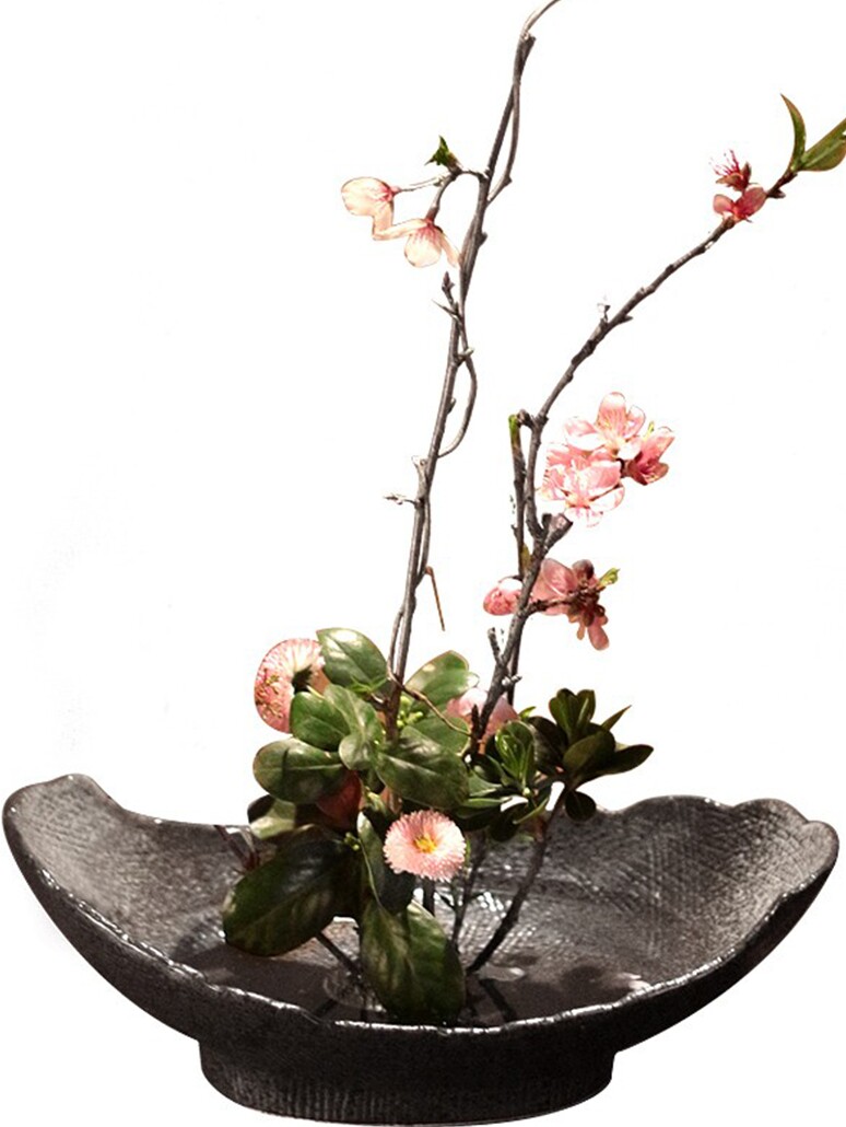 淘宝花盆陶瓷花器小原流插花花道禅意创意日式剑山插花盘简约艺术盆器