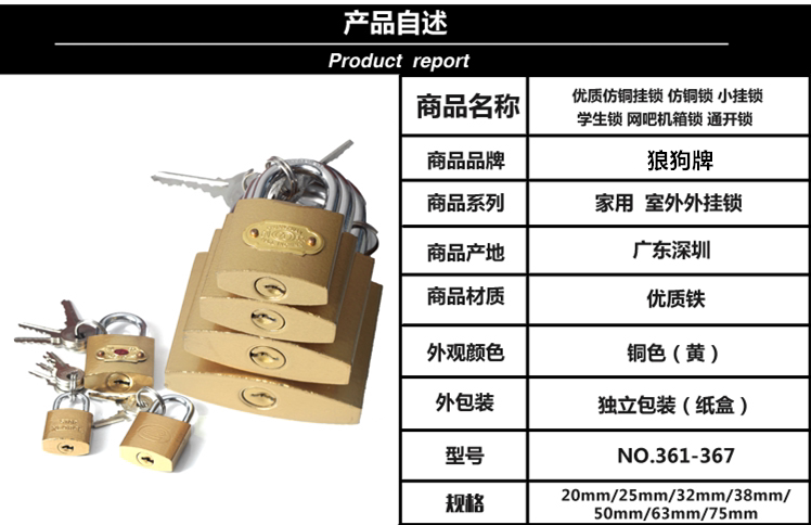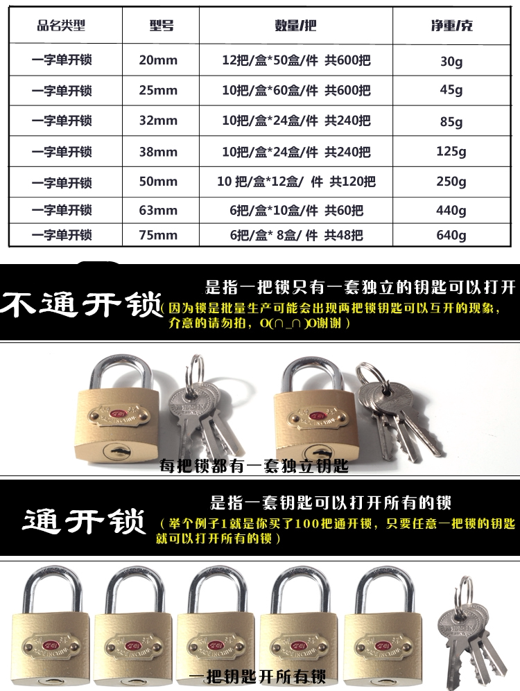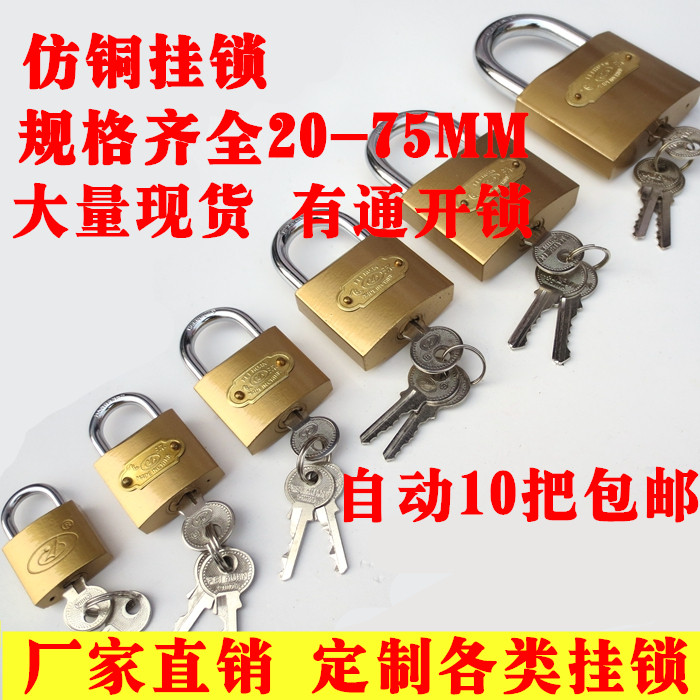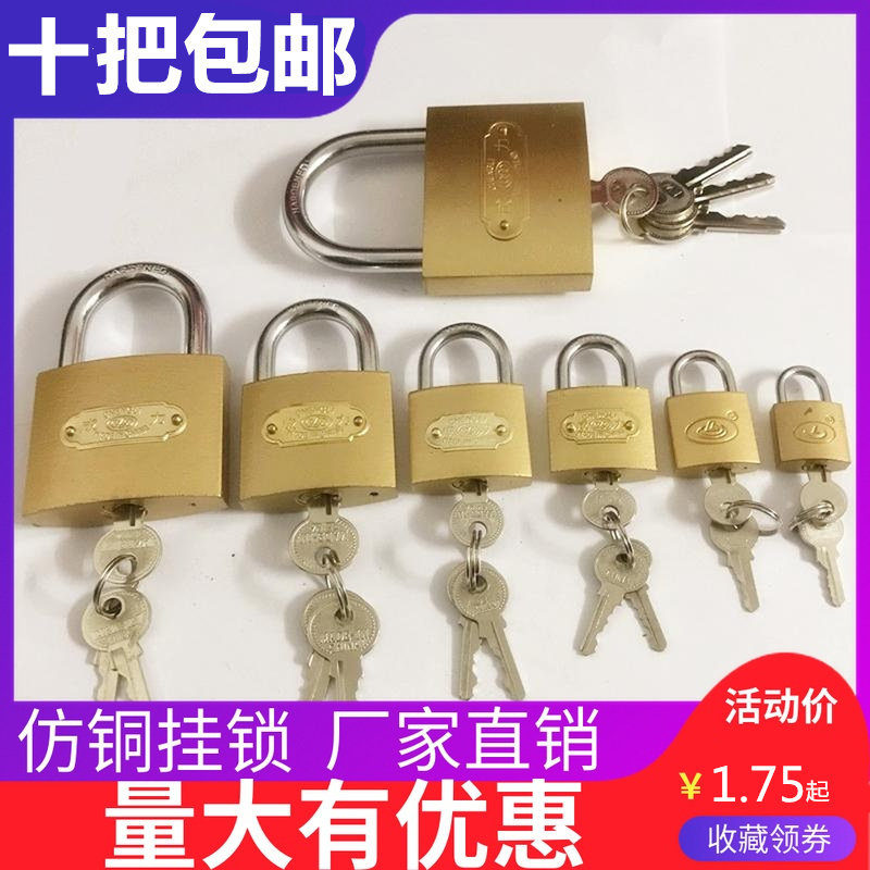 淘宝仿铜挂锁通开锁小锁头一把钥匙开多把铁锁头宿舍小挂锁机箱通用锁