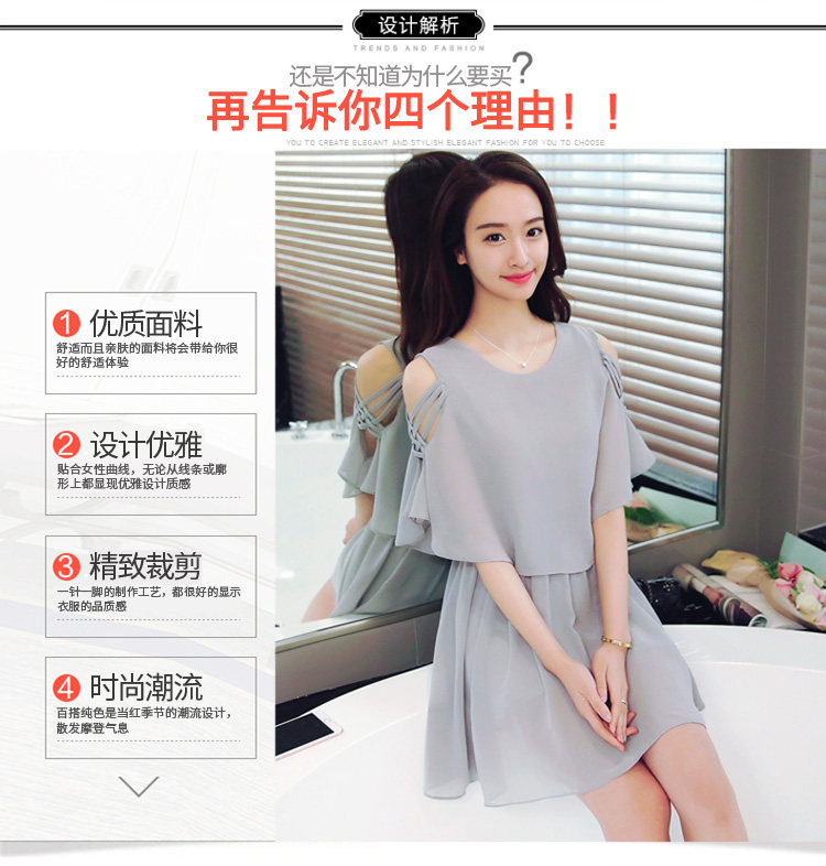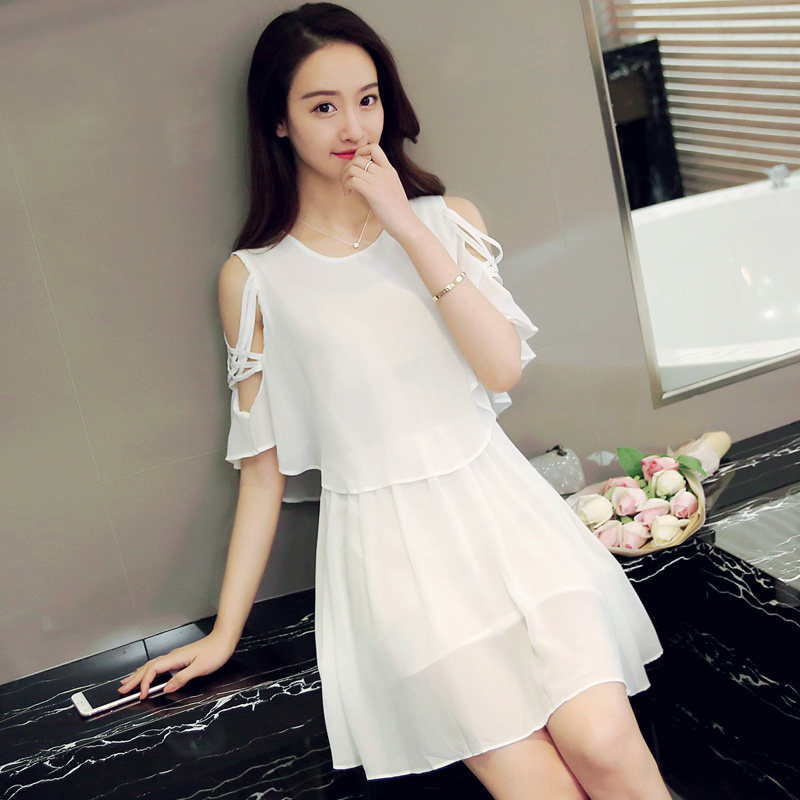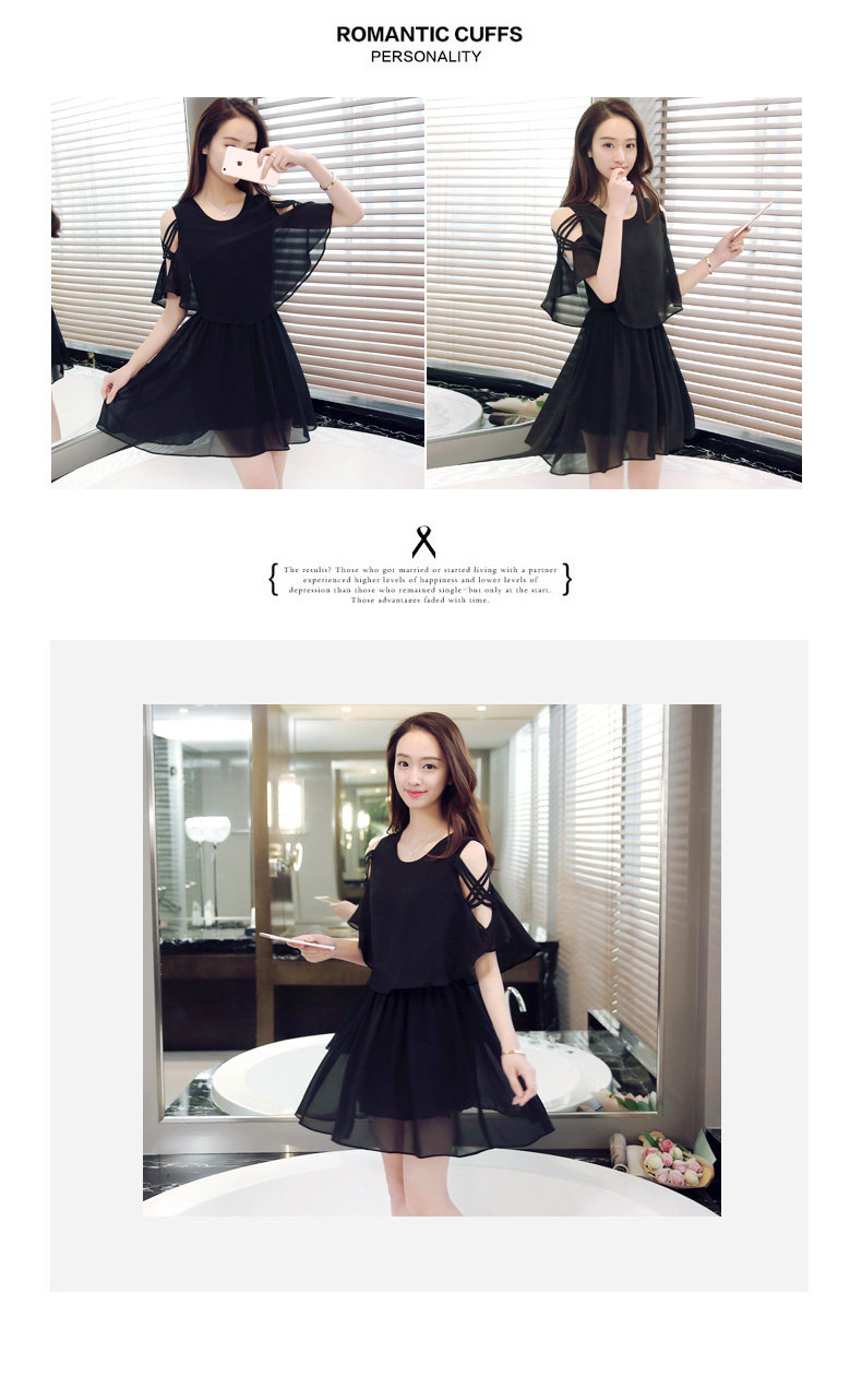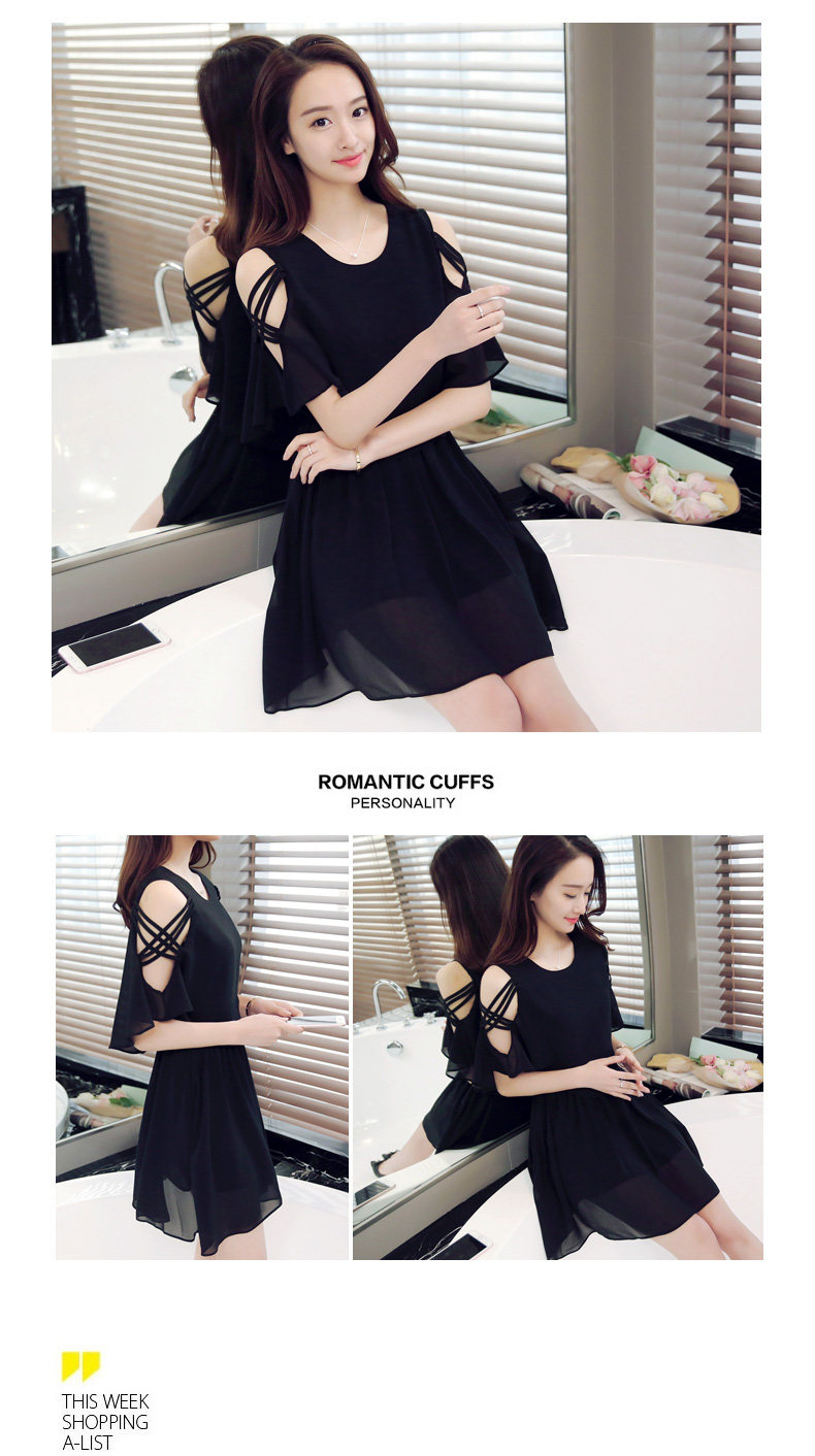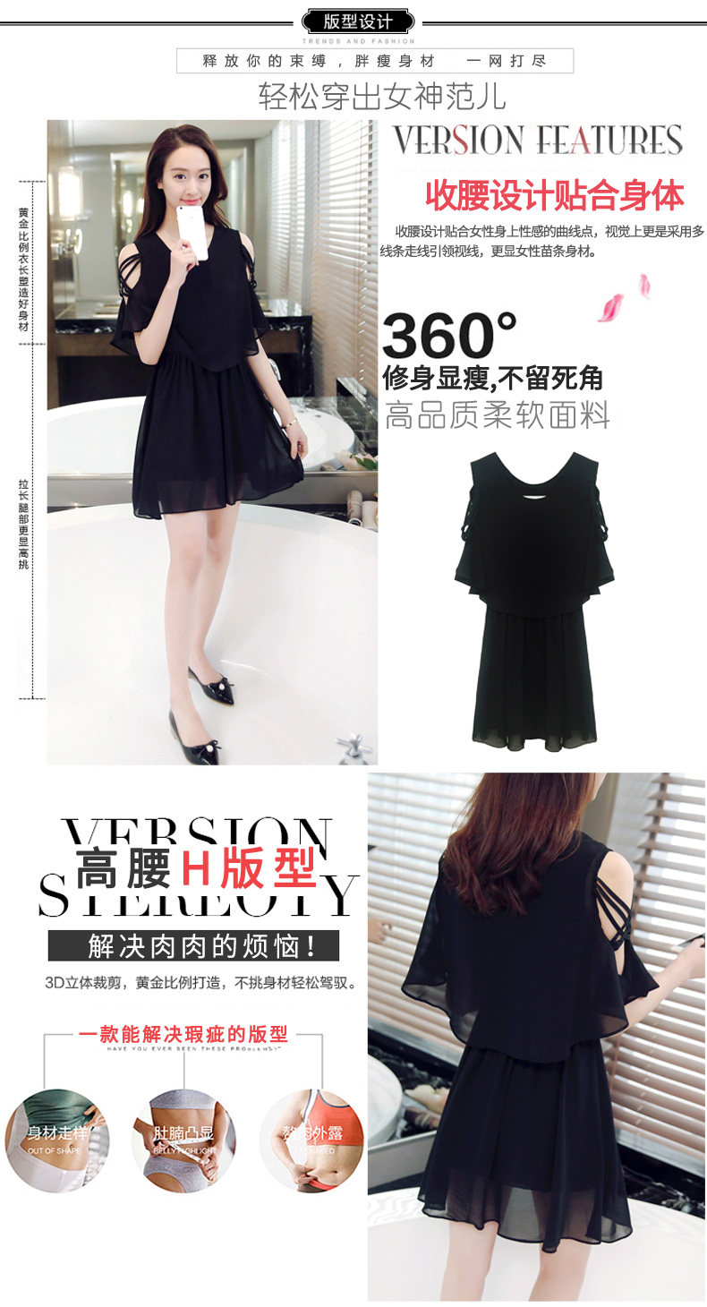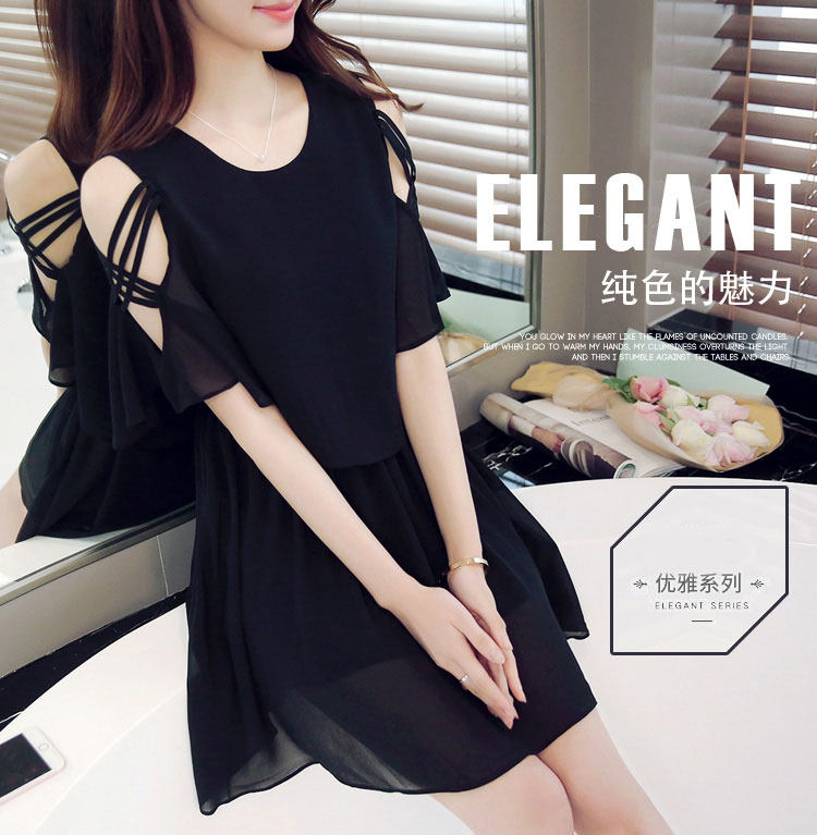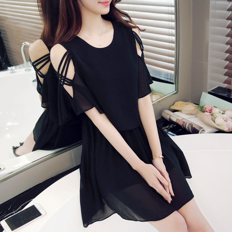 淘宝夏季新款小清新露肩雪纺连衣裙夏季女装仙女超仙流行黑色a字裙子