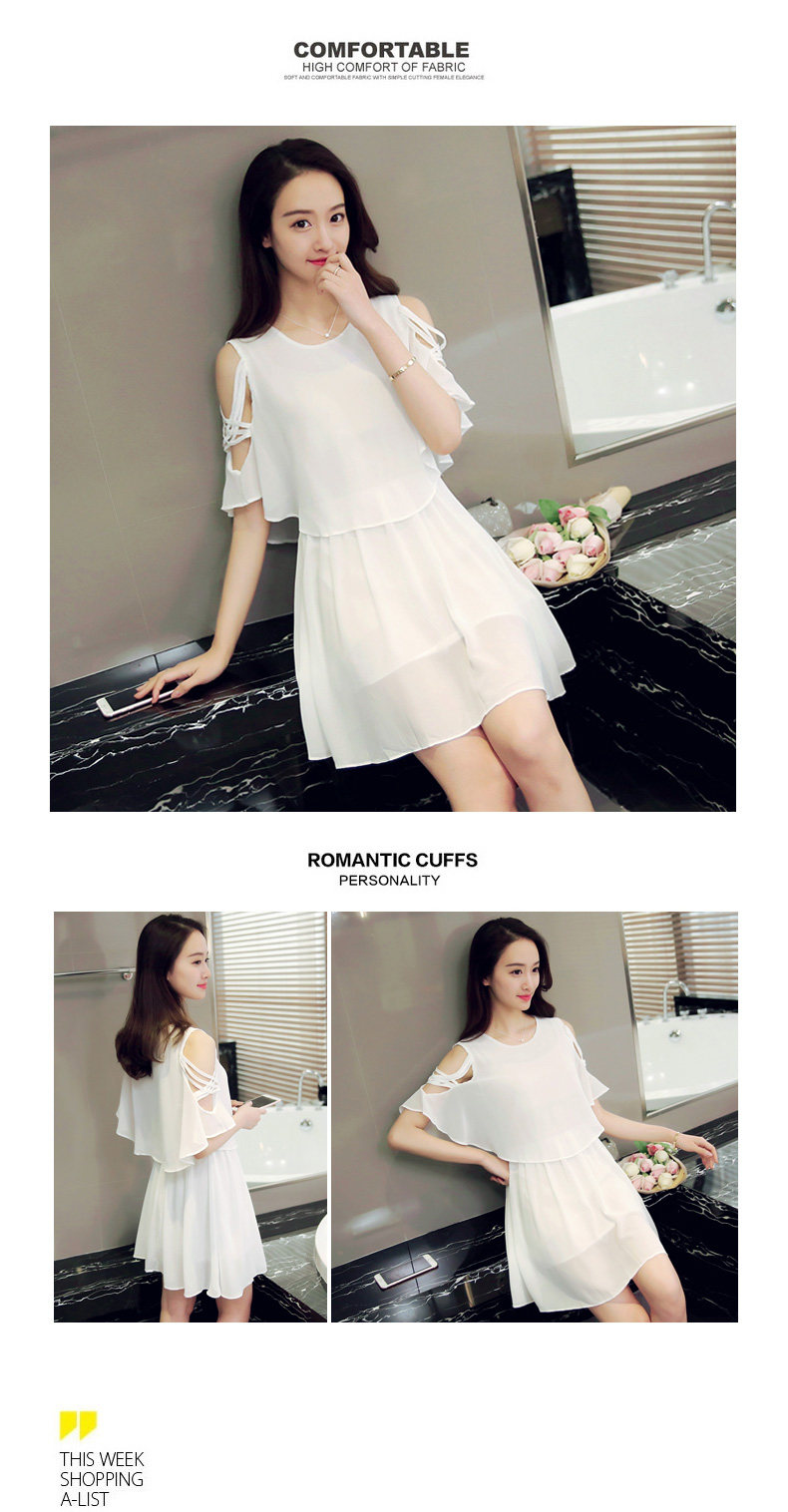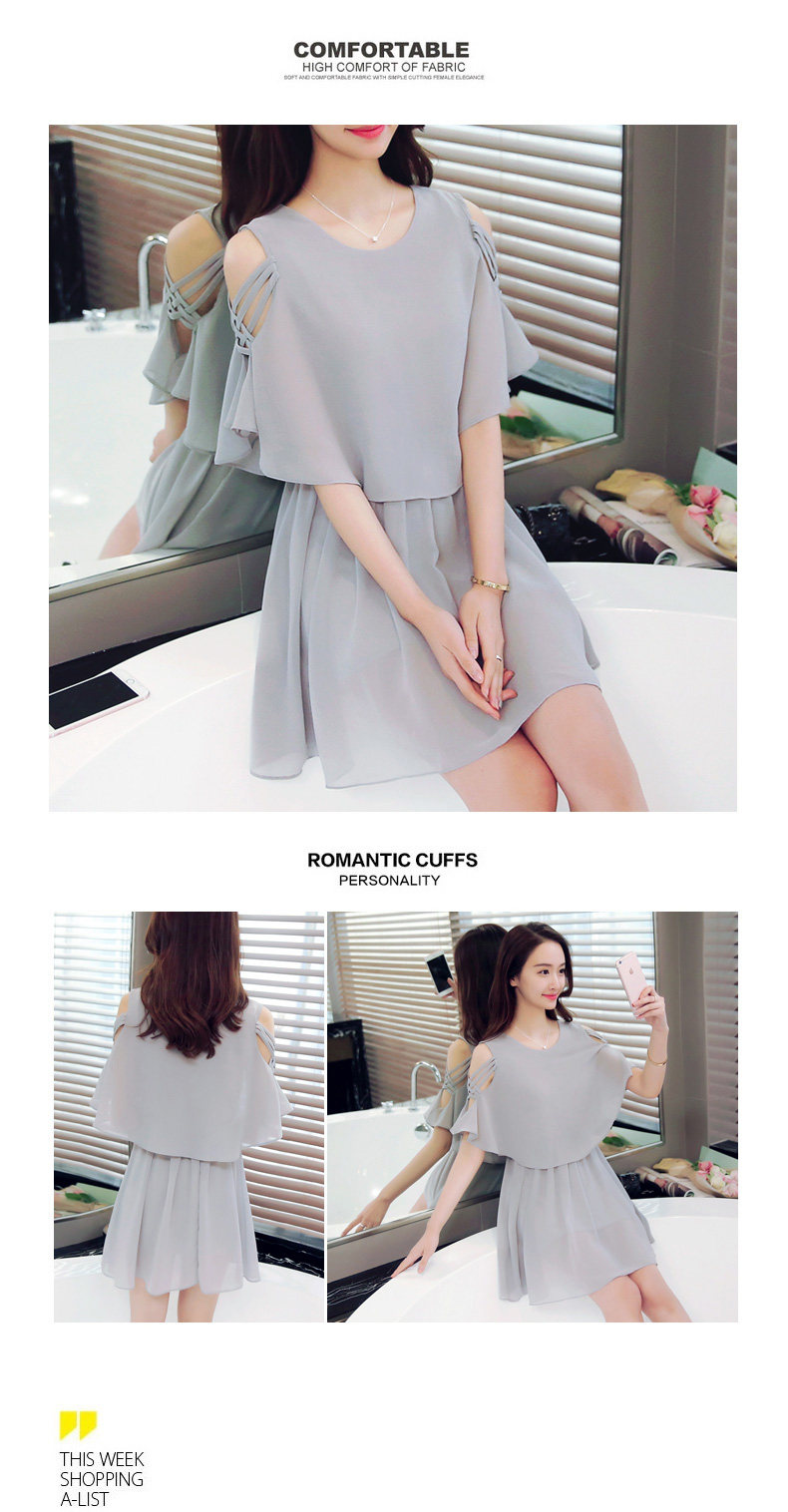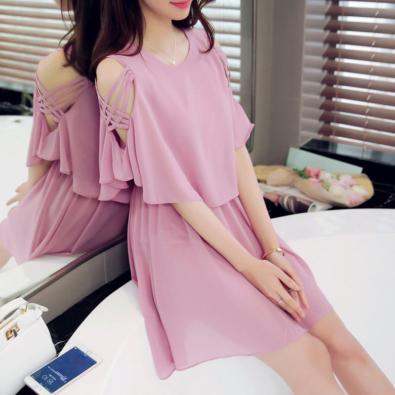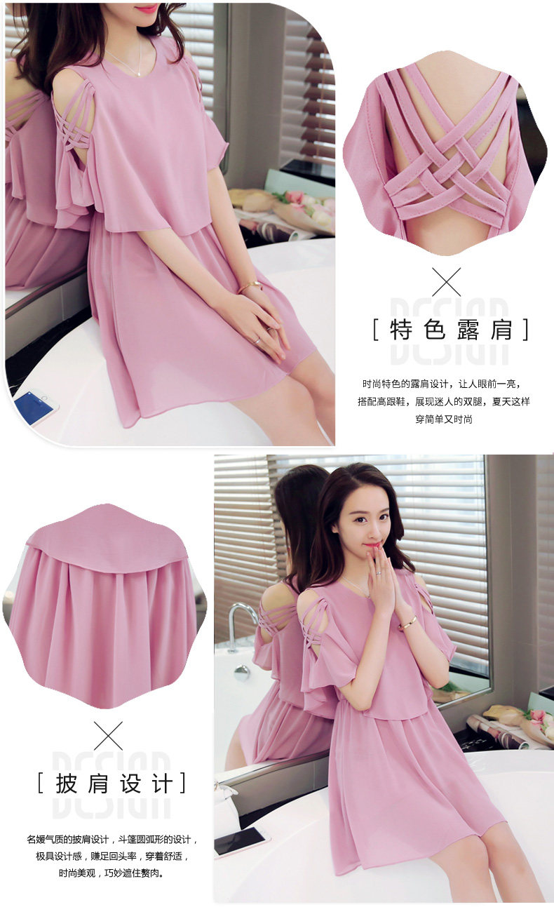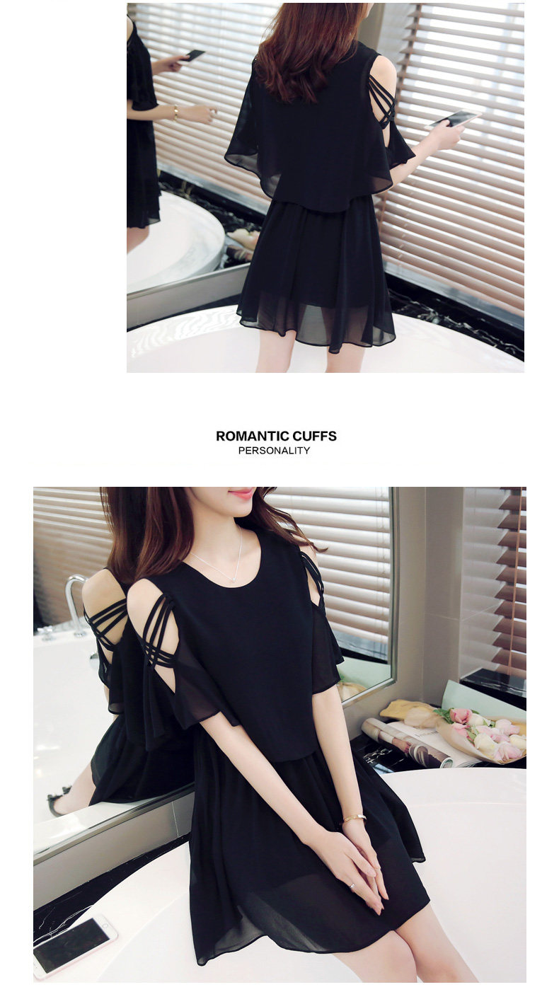 淘宝夏季新款小清新露肩雪纺连衣裙夏季女装仙女超仙流行黑色a字裙子
