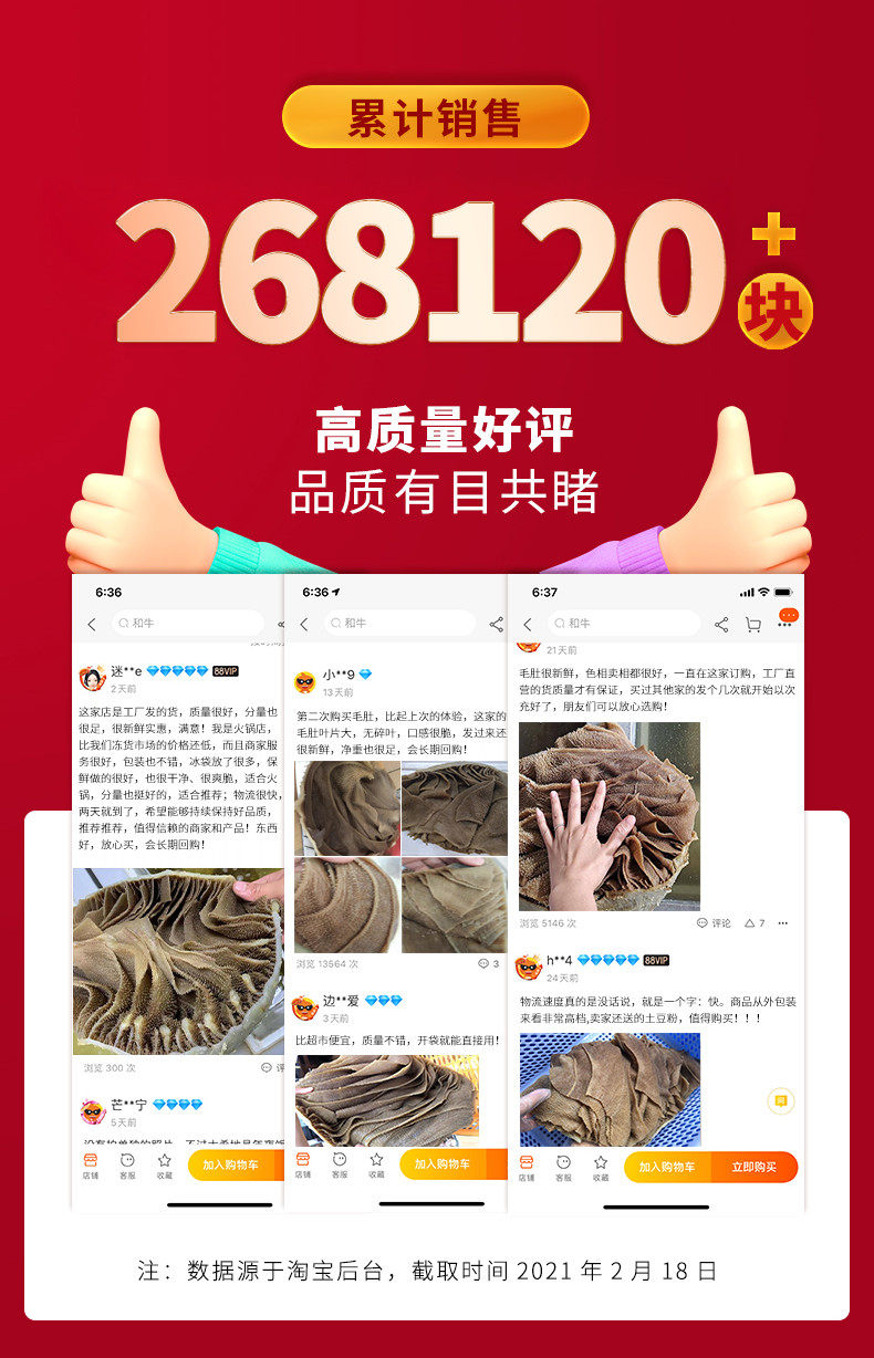 淘宝新鲜毛肚整个牛百叶带底板5斤装商用大叶片冷冻黑千层肚火锅食材