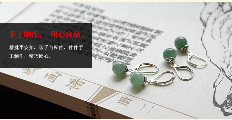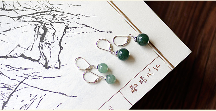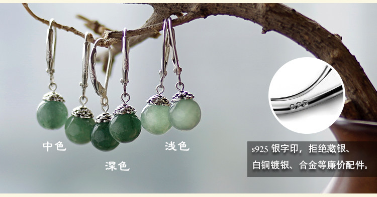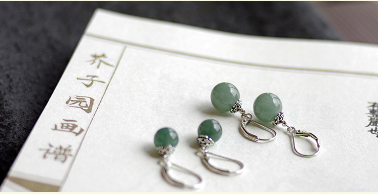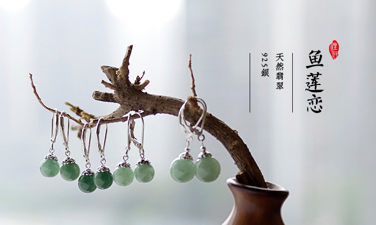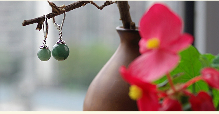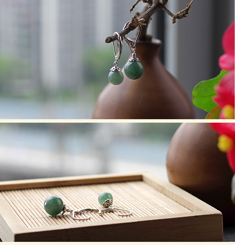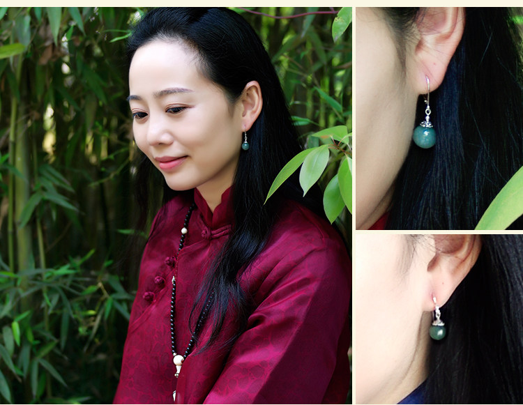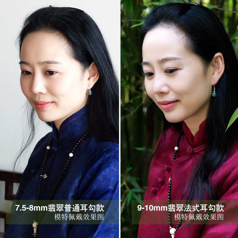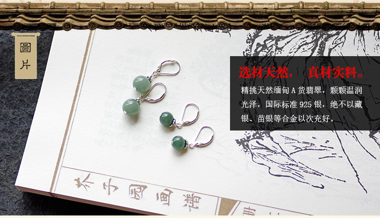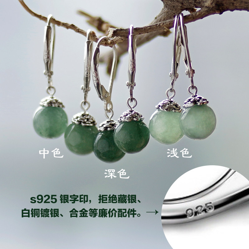 淘宝玉耳环法式耳饰天然翡翠缅甸玉A货纯银耳钩复古民族简约 狸奴原创