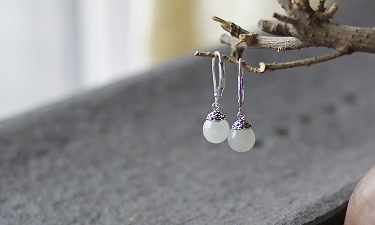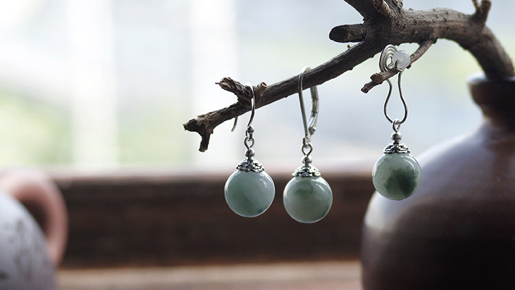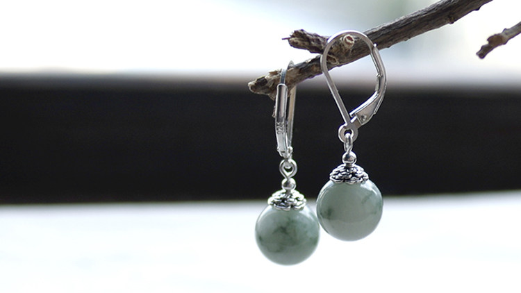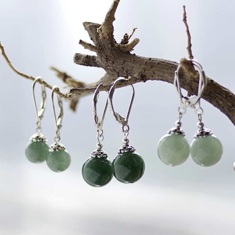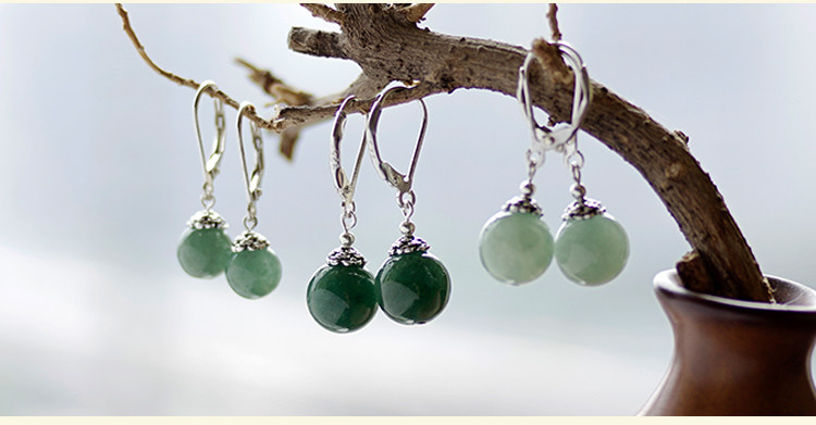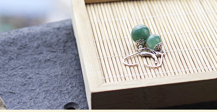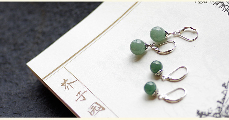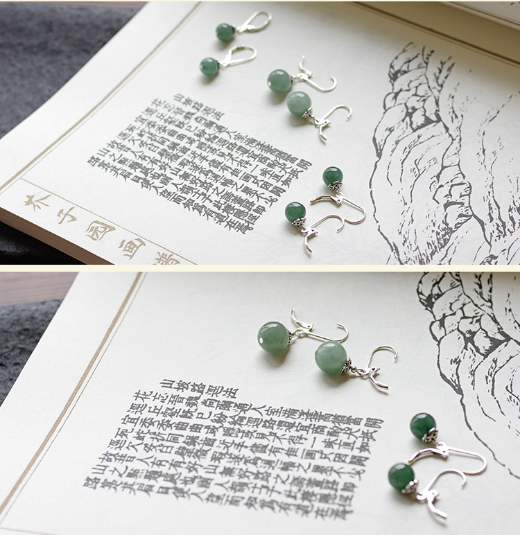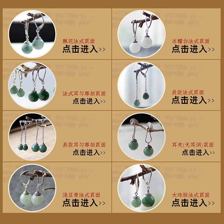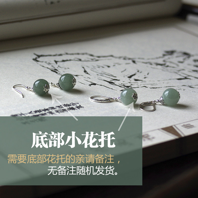 淘宝玉耳环法式耳饰天然翡翠缅甸玉A货纯银耳钩复古民族简约 狸奴原创