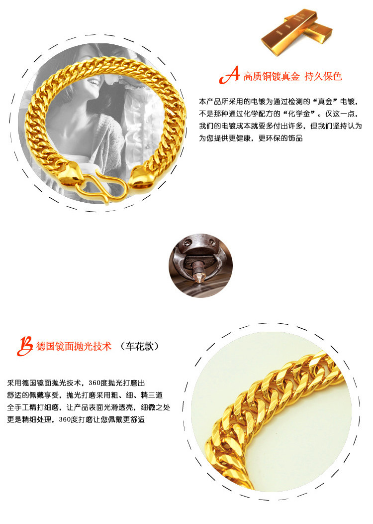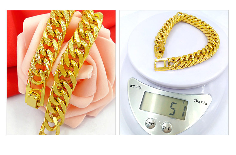 淘宝越南沙金马鞭手链男 镀24K金手链久不掉色老板金手链女情侣金手饰