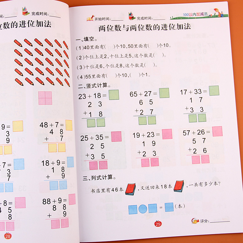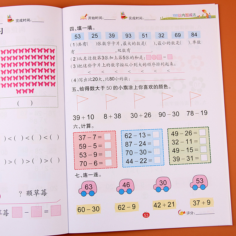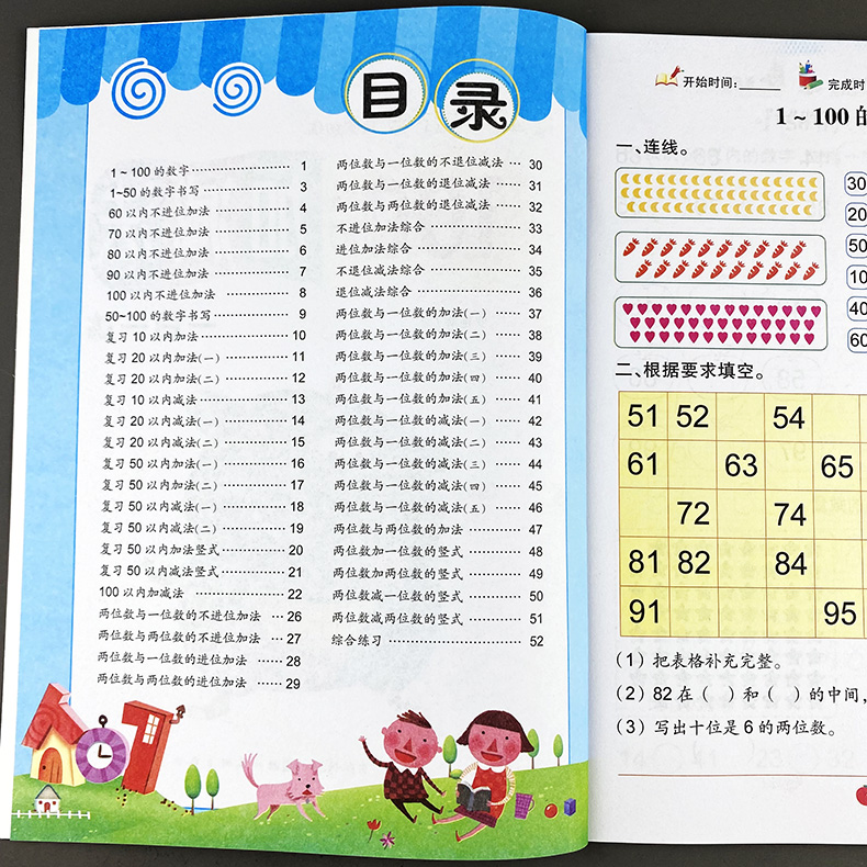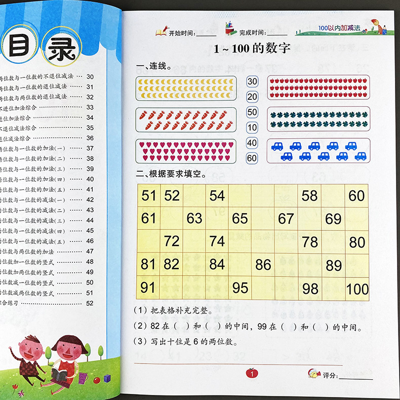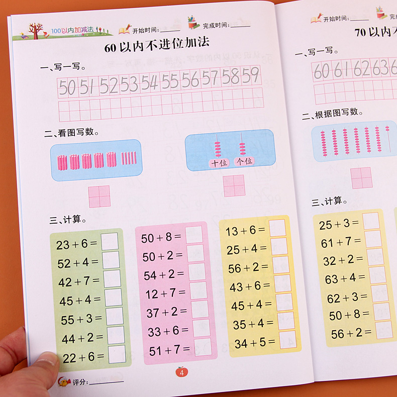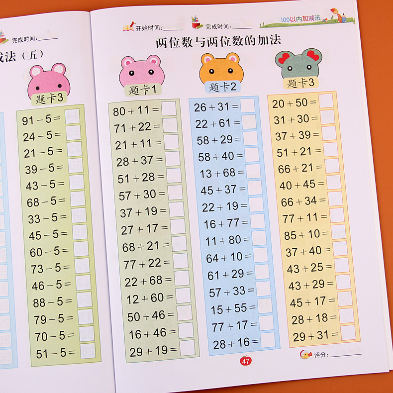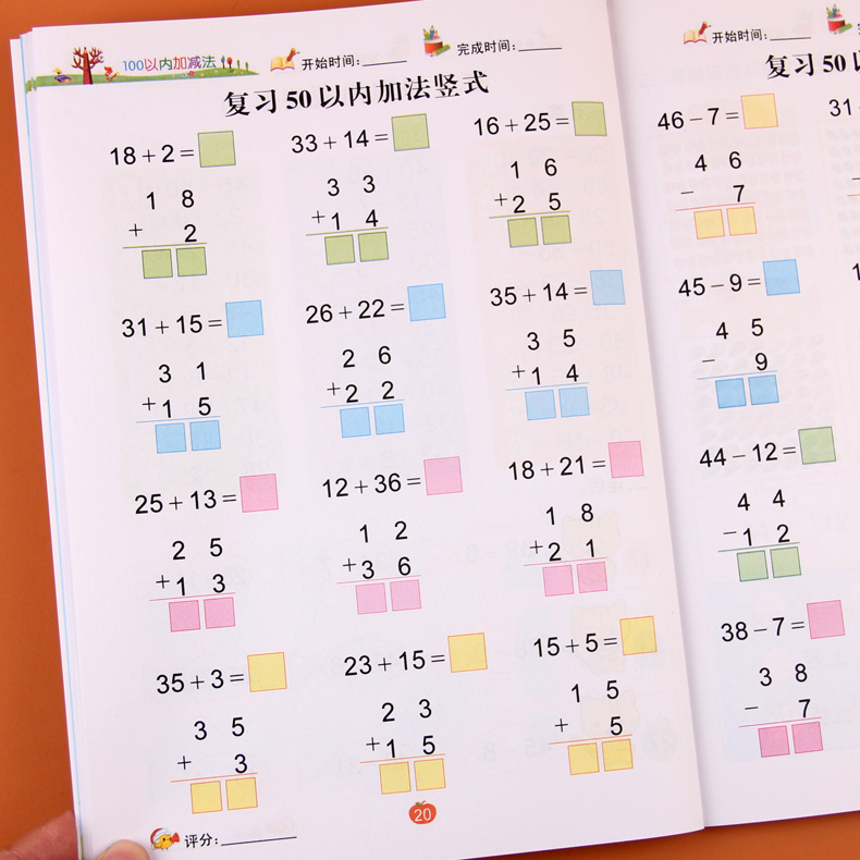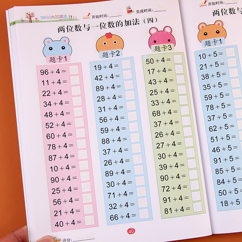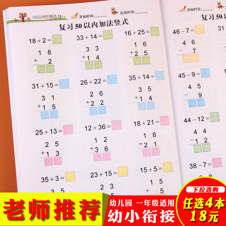 淘宝100以内加减法口算练习题卡 幼儿园数学练习册 3-6岁幼小衔接数学启蒙教材 一百以内加减法 儿童学前班50以内天天练横式竖式计算题
