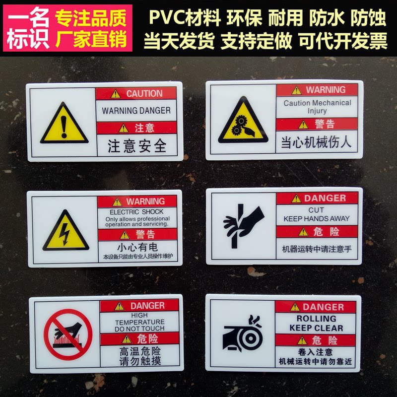 淘宝小心有电危险安全标识牌警告标志机械设备标示贴纸注意安全警示牌