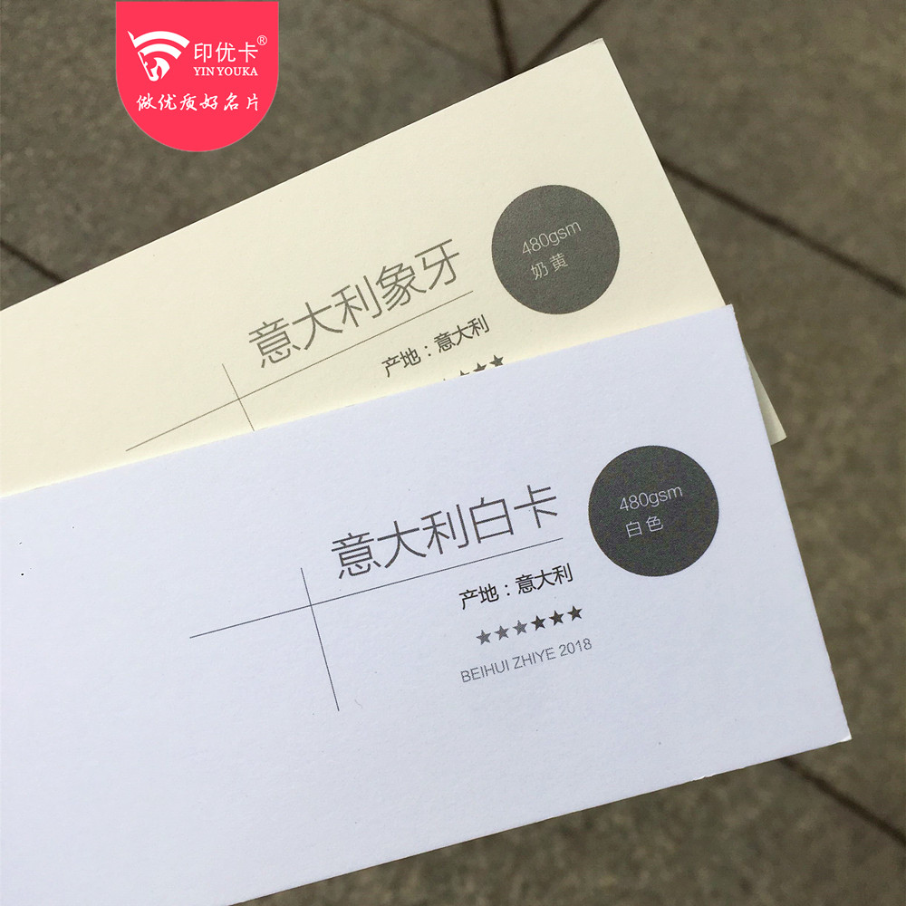 淘宝名片新款480克意大利白卡象牙卡特种纸设计印刷凹凸烫金商务创意