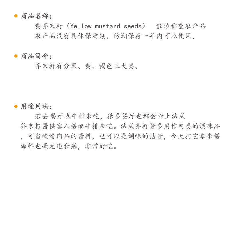天猫菜男黄芥末籽10gYellow Mustard香辣川芥末籽散装芥菜籽小粒