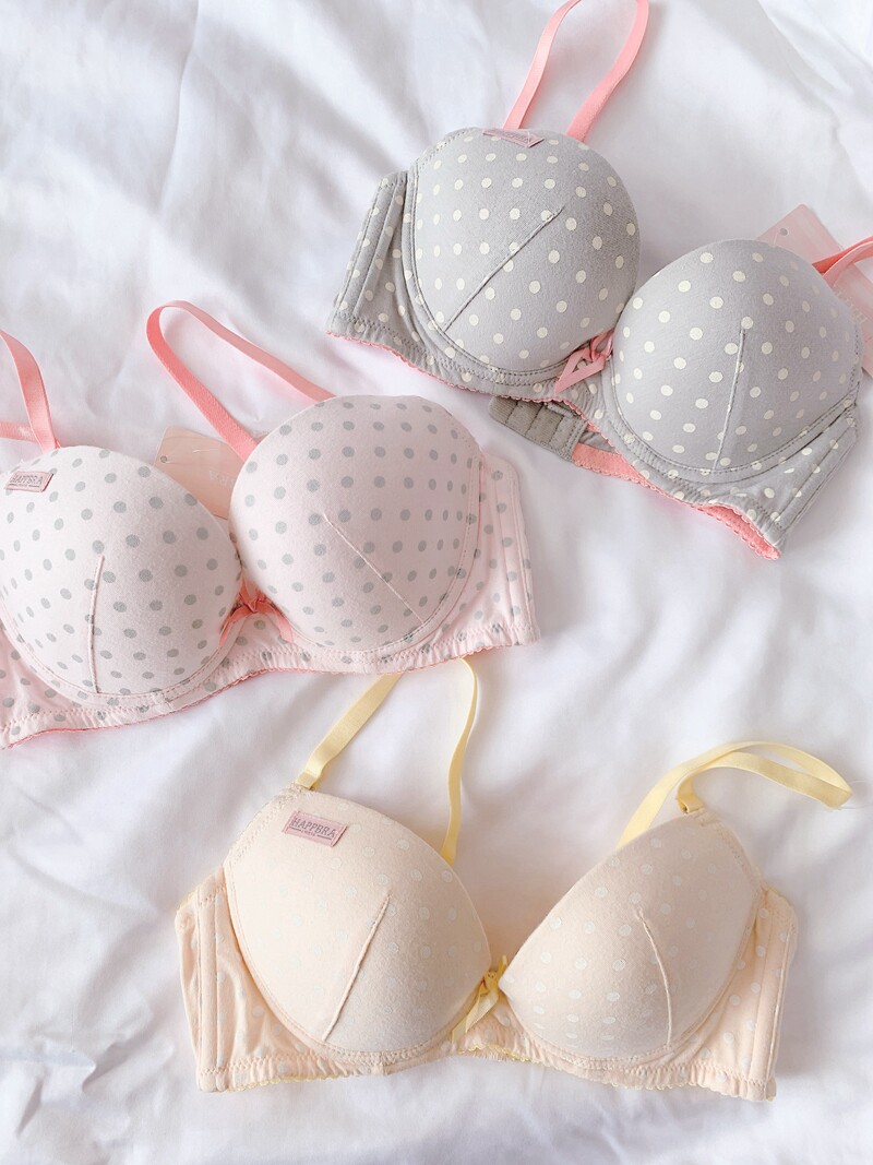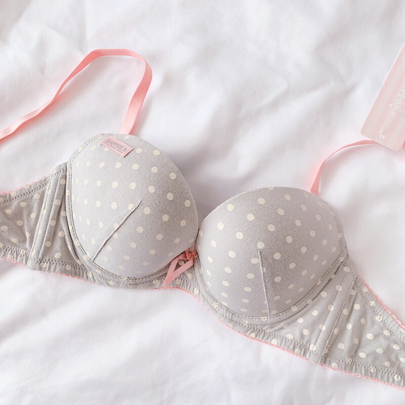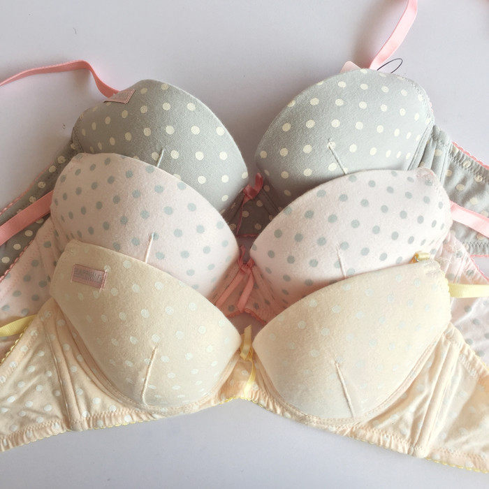 淘宝无标处理桑扶兰旗下品牌happbra纯棉薄款2排扣可爱内衣文胸女乳罩