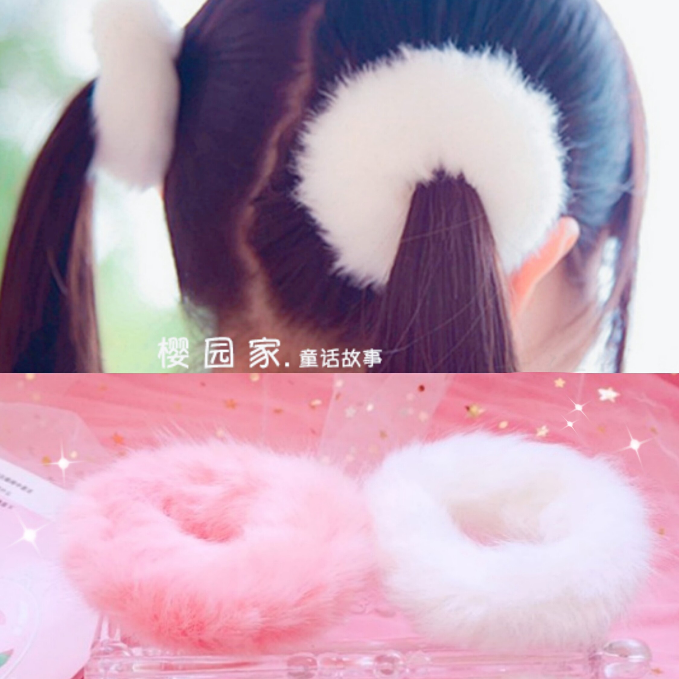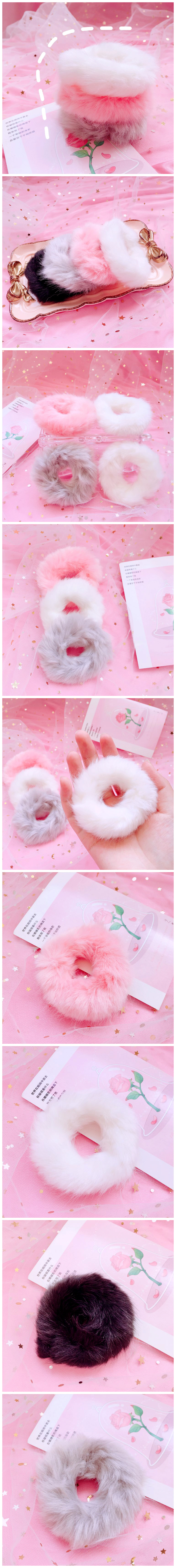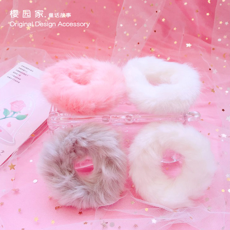 淘宝樱园家 少女可爱lolita粉色白色毛绒绒发圈/毛绒发圈兔毛发圈