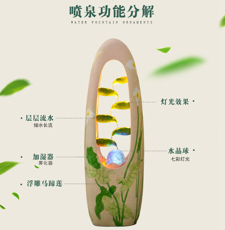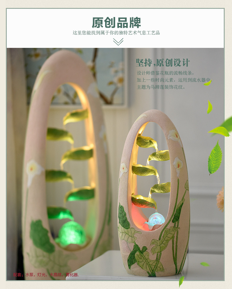 天猫喷泉流水器摆设家里风水轮客厅摆件办公室转运球加湿器开业送礼品