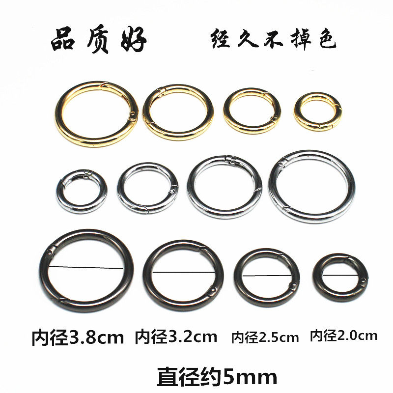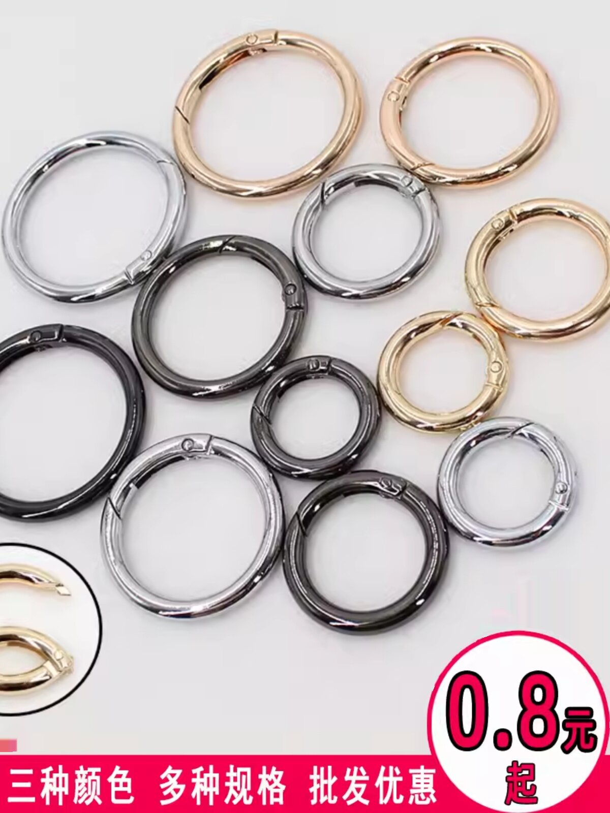 淘宝圆环弹簧圈弹簧扣枪黑浅金圆扣箱包配件包包五金配件金属环铁环