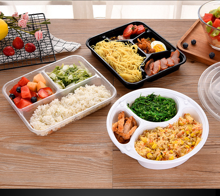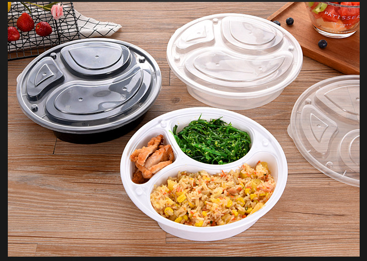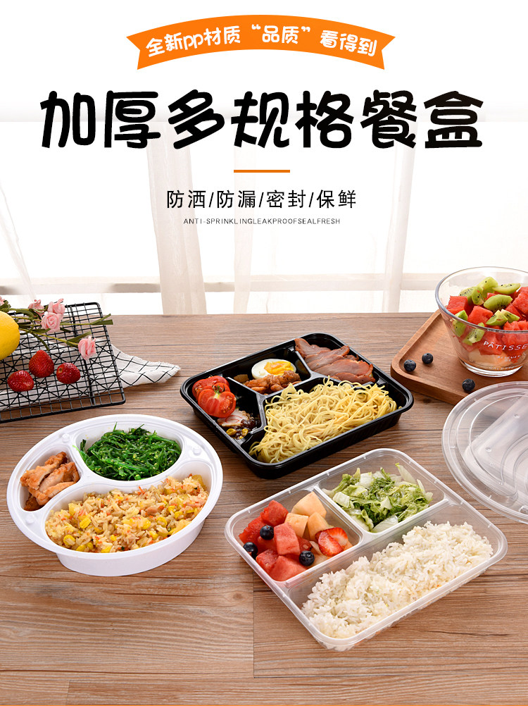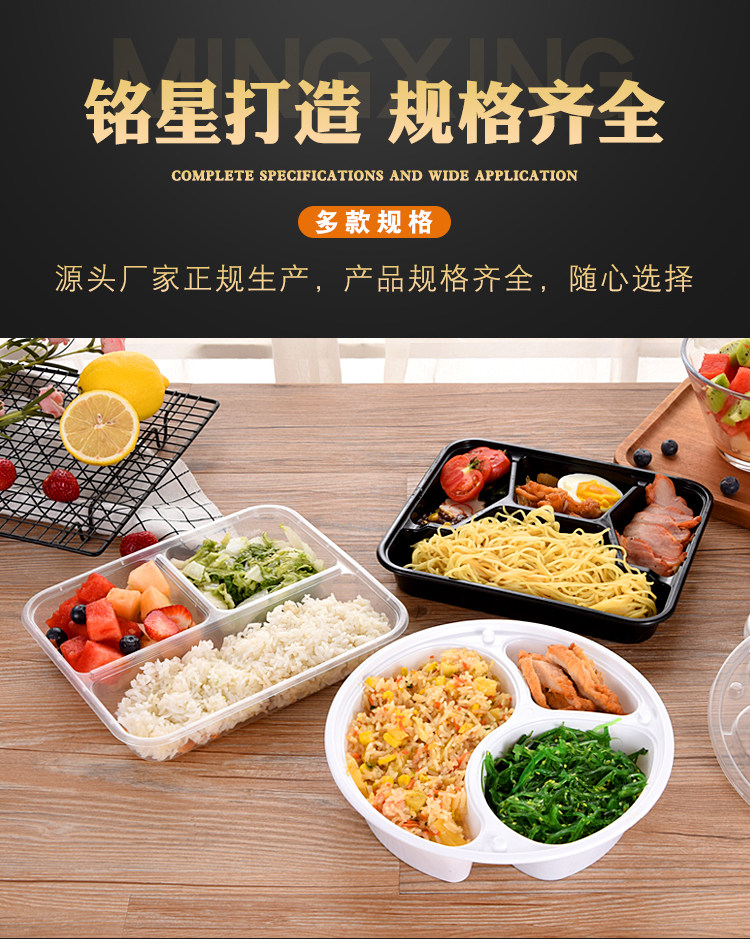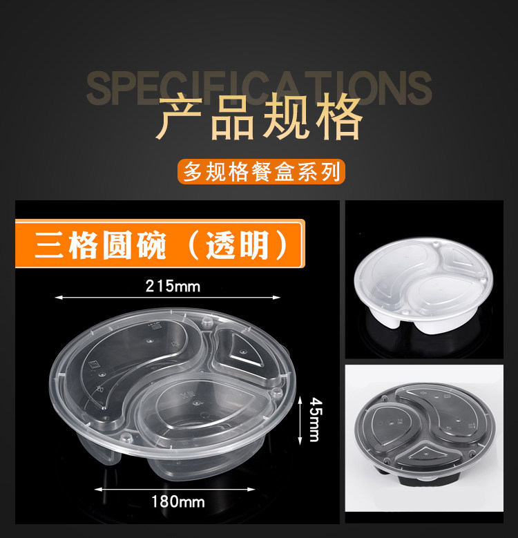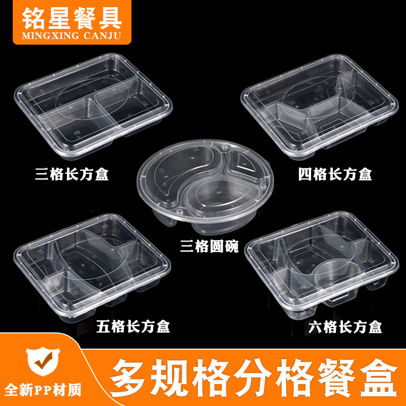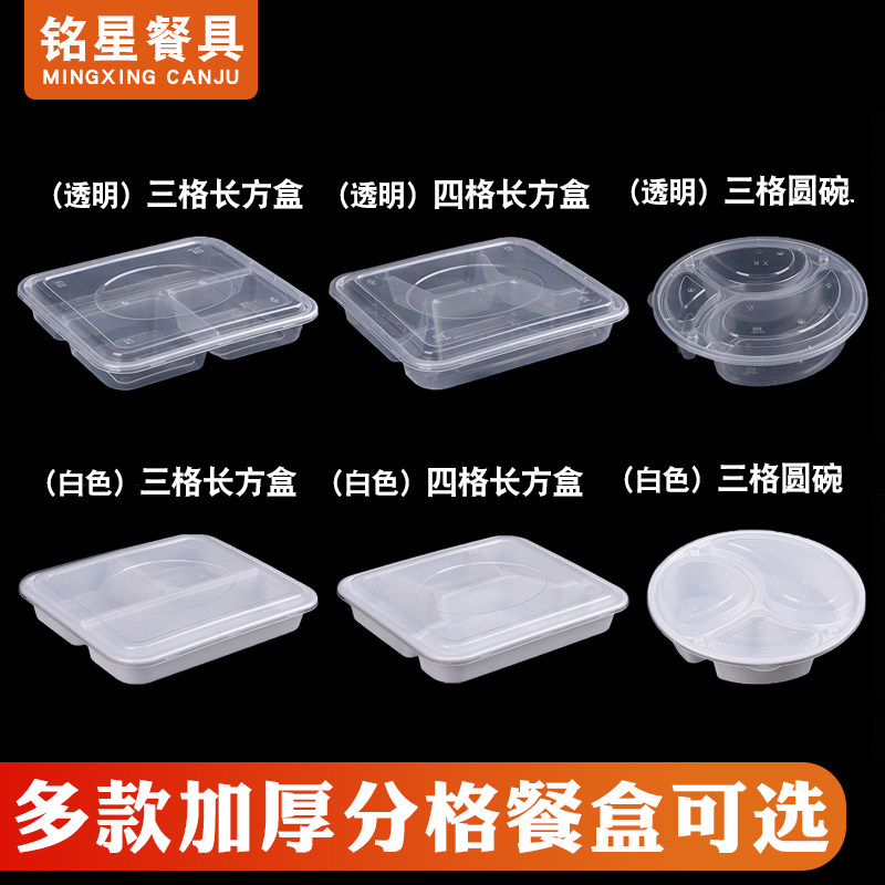 淘宝铭星圆形方形塑料一次性餐盒三格四格外卖饭店便当打包盒加厚饭盒