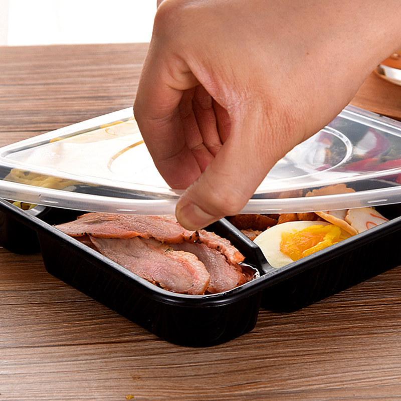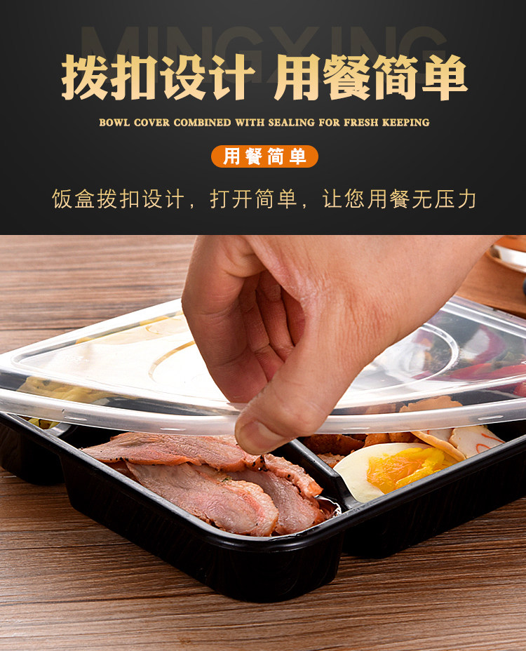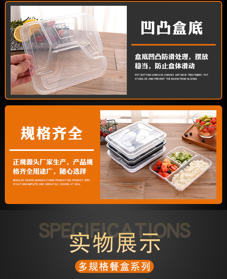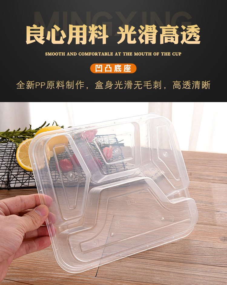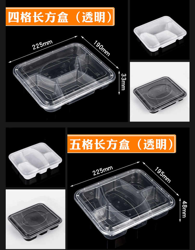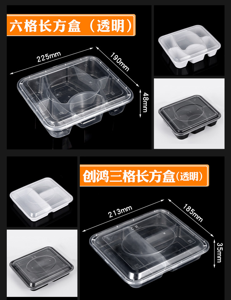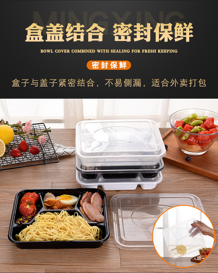 淘宝铭星圆形方形塑料一次性餐盒三格四格外卖饭店便当打包盒加厚饭盒