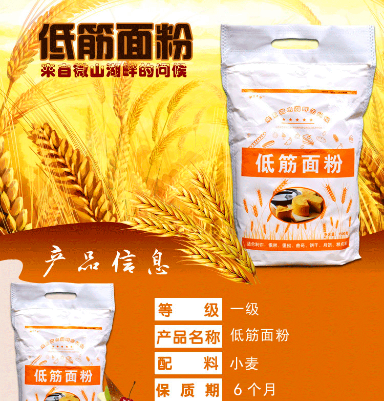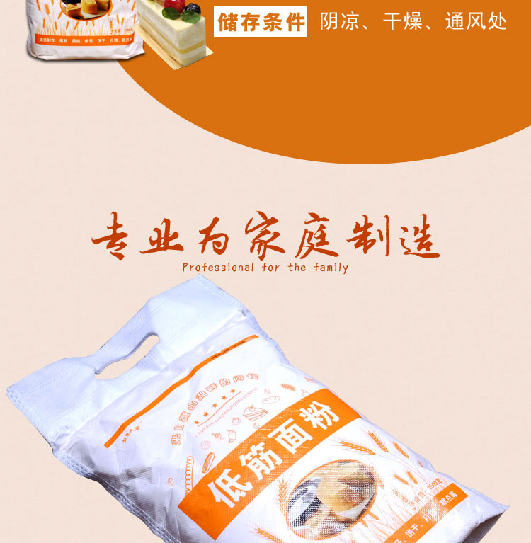 本款标准的低筋面粉,蛋白质含量8.5% 我们自己经常用的一直做的很好哦,而且物美价廉的。不止本款物美价廉,各位可以进店铺逛逛,每款都是很实惠的,本款一件可包邮,搭配店内其他任何款都可以一起包邮【加购物车结算下单自动包邮】