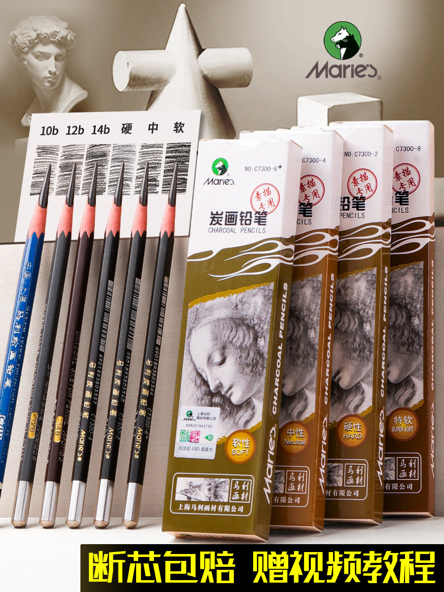 淘宝马利炭笔美术生专用素描铅笔绘画碳笔初学者速写软中硬特软性绘图画画工具套装14b美术用品马力12b碳画笔全套