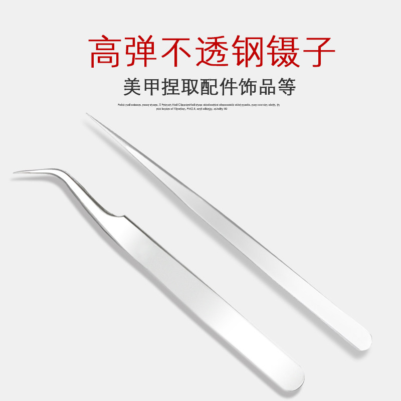 淘宝美甲工具专用不锈钢直头弯头镊子夹钻夹贴花小夹子套装超高精准度