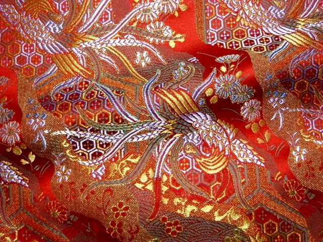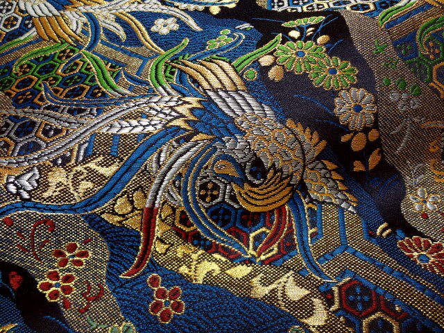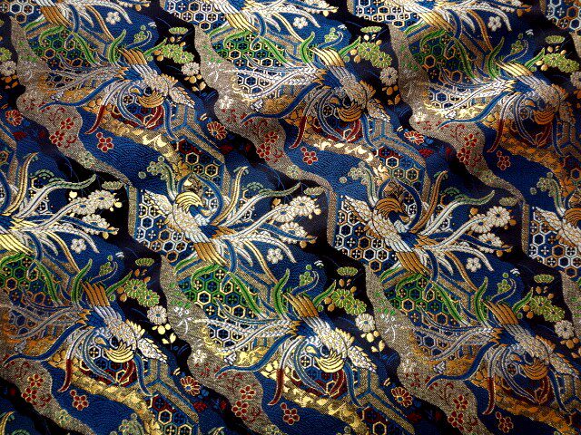 淘宝日本进口 和风布料 西阵织 织锦缎 金襕织物 鳳凰雅錦(艶紺)